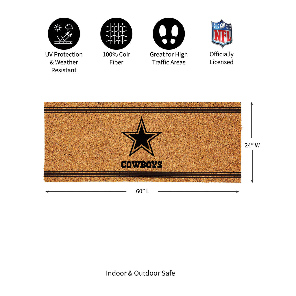 Show your team spirit with the Dallas Cowboys Extra Large Coir Mat, perfect for any fan's entryway. Its durable coir construction is ideal for outdoor use, providing a welcoming touch with a sports theme.