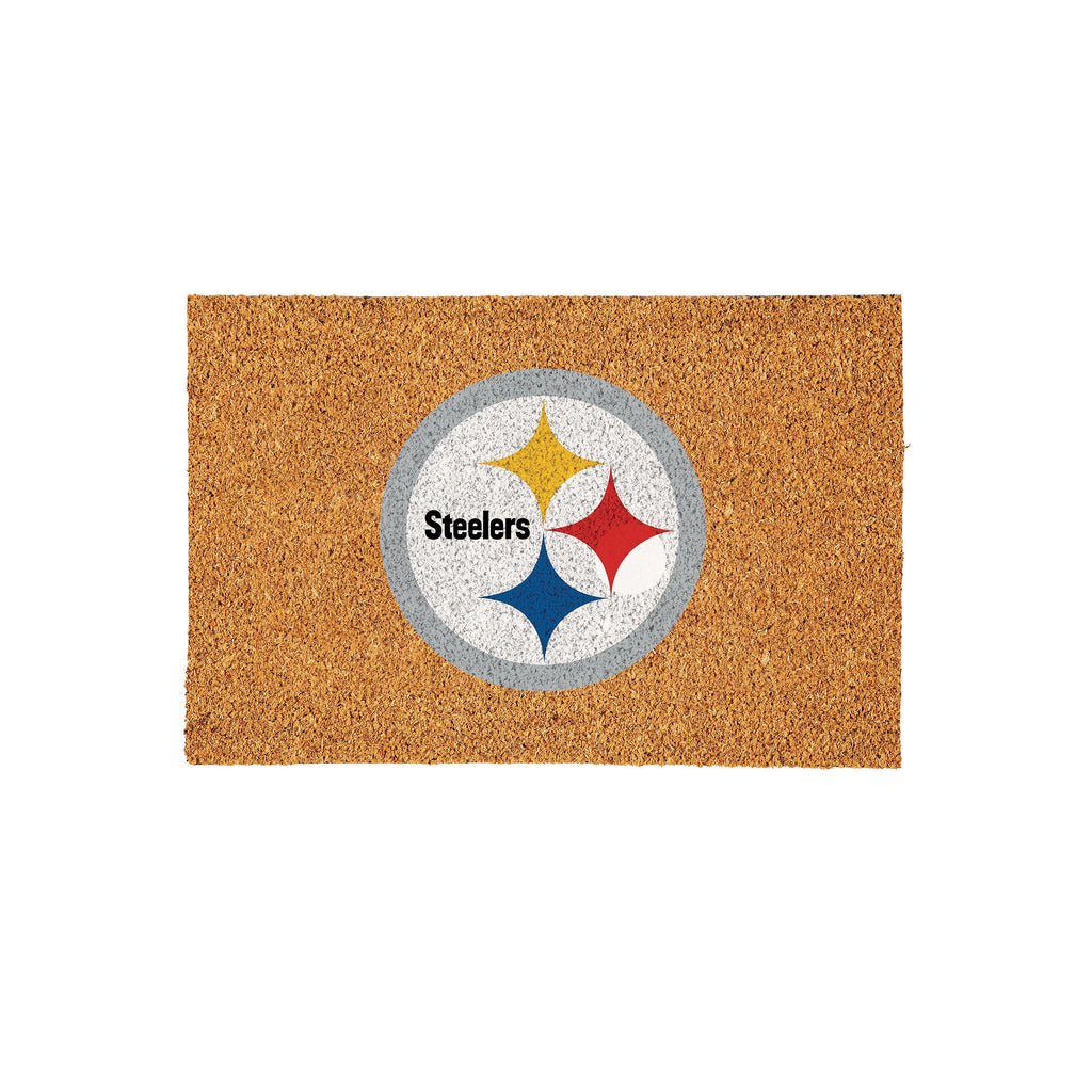 Show your team spirit with the Pittsburgh Steelers Large Full Color Coir Mat, perfect for any Steelers fan's entryway. This durable mat is designed to withstand outdoor elements while adding a touch of team pride.