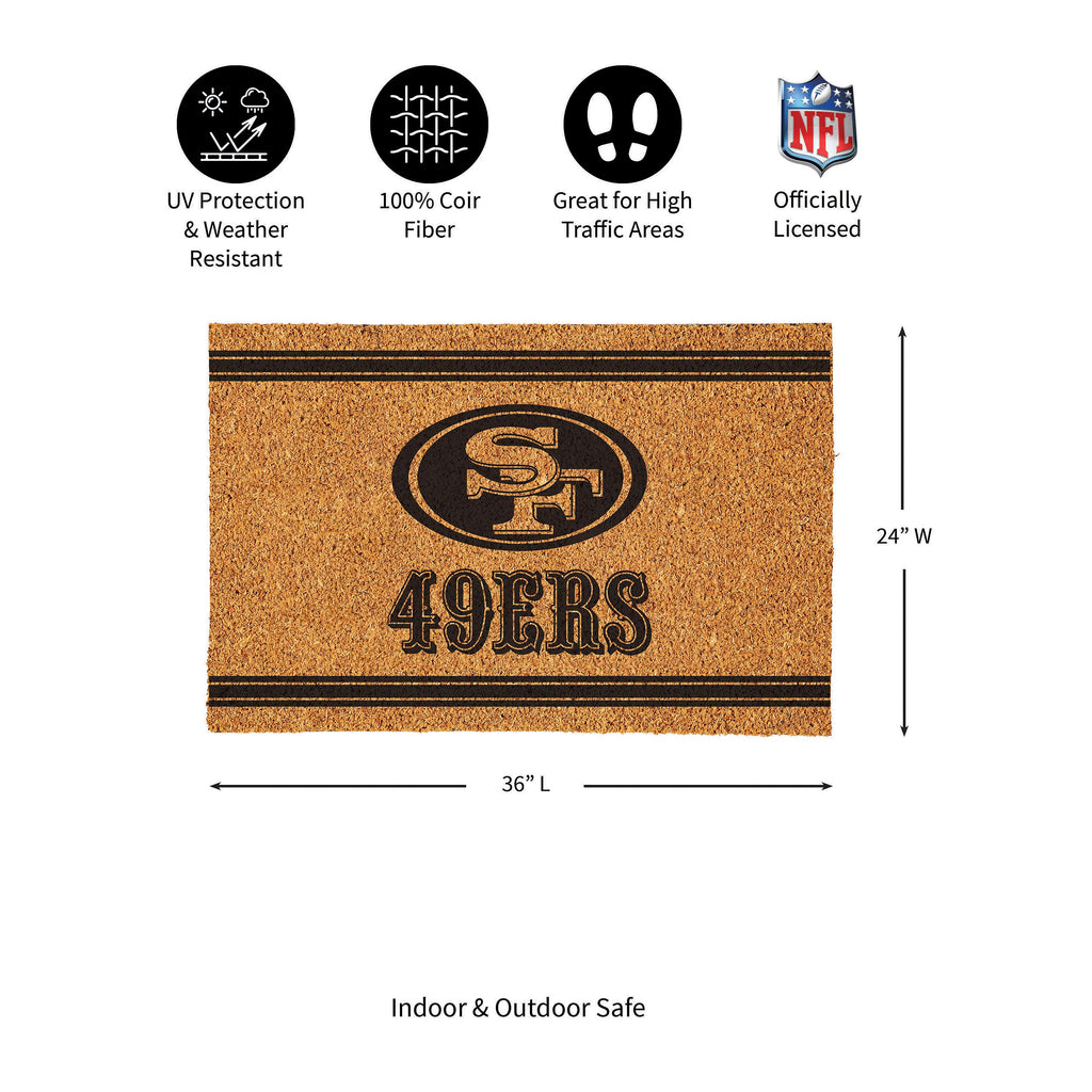 Show off your team spirit with the San Francisco 49ers Large One Color Coir Mat, perfect for welcoming guests to your home. This durable coir mat is designed to withstand outdoor conditions while displaying your favorite team's logo.