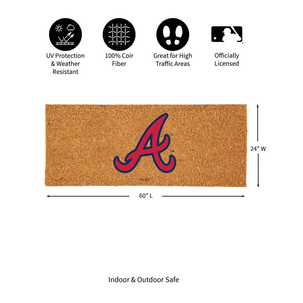 Show your team spirit with the Atlanta Braves Extra Large Full Color Coir Mat, perfect for any fan's entryway. Made from durable coir, this mat is designed to withstand outdoor conditions while adding a touch of team pride to your doorstep.