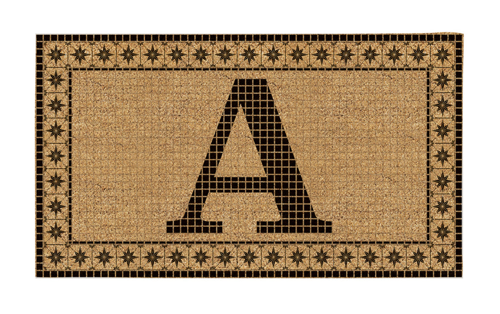 Monogram Flocked Coir Vintage Tile Mat, Letter A,2rmc1296ma