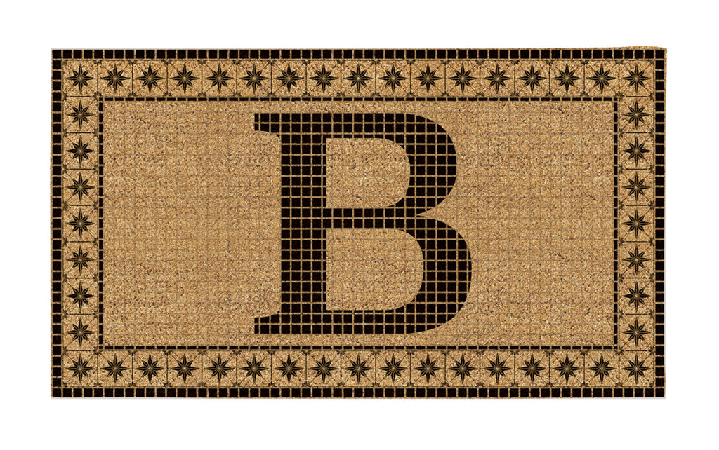 Monogram Flocked Coir Vintage Tile Mat, Letter B,2rmc1296mb