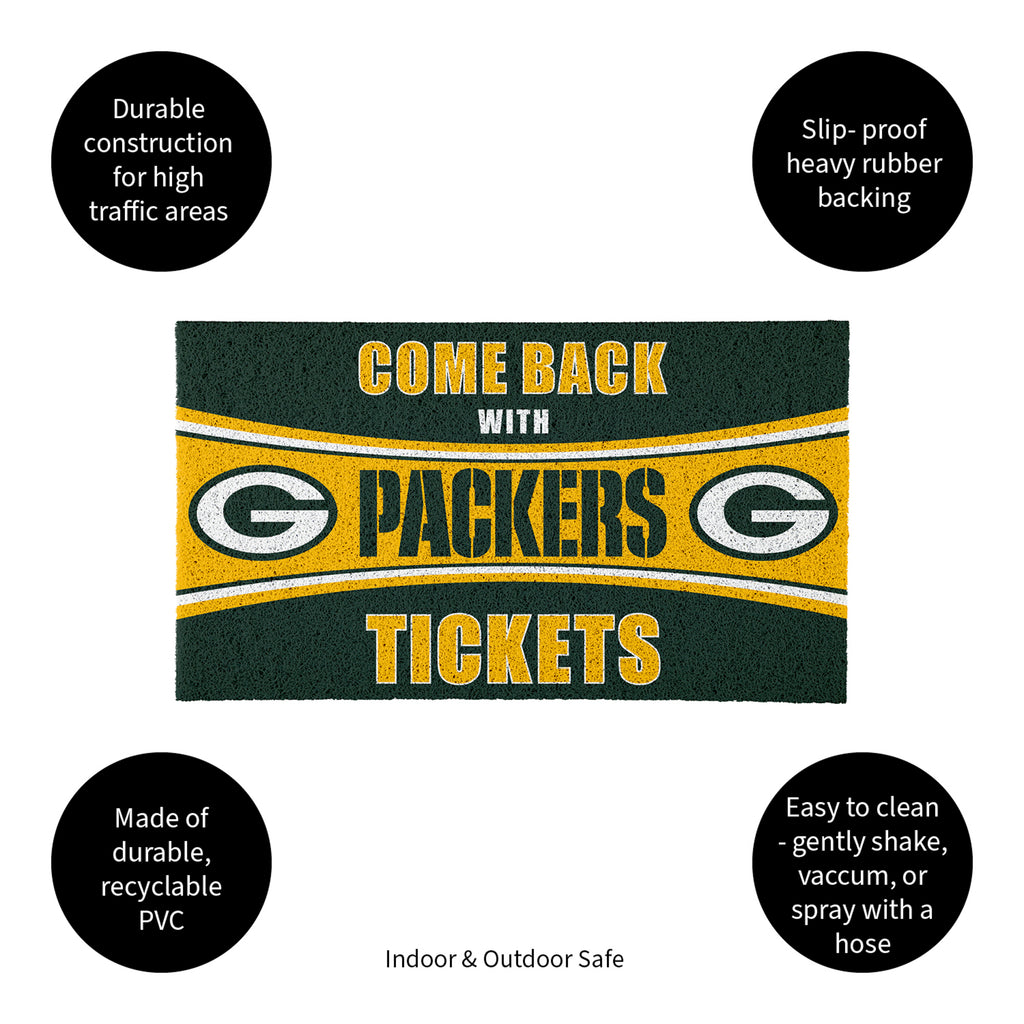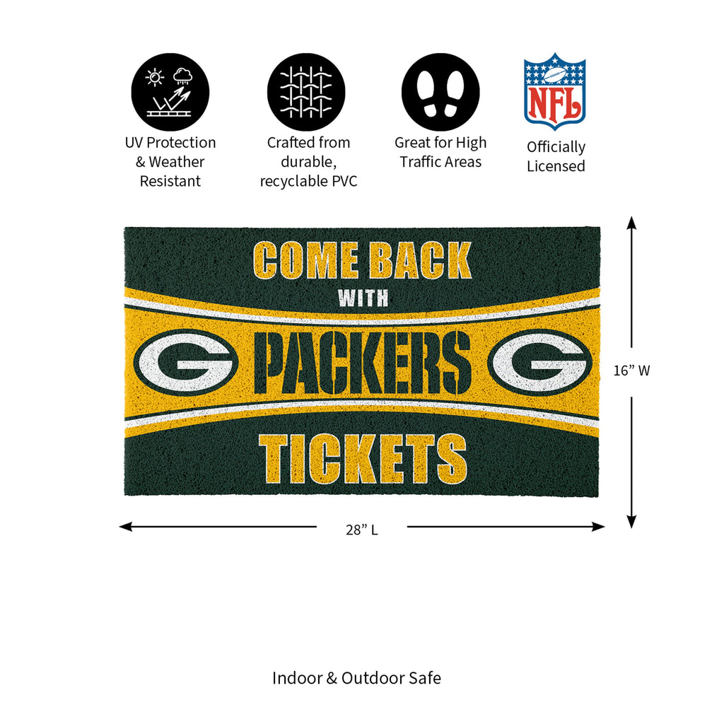 Show your team spirit with this officially licensed 28" x 16" PVC Green Bay Packers Trapper Mat. Perfect for any Packers fan, this mat is both durable and stylish, making it ideal for high-traffic areas.