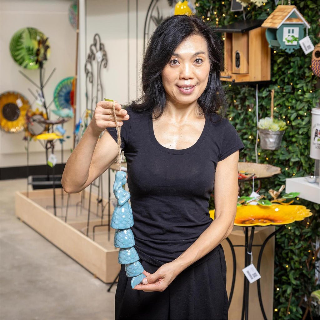 Palm Beach Garden Bell, Ceramic Bell, Iridescent Mermaid