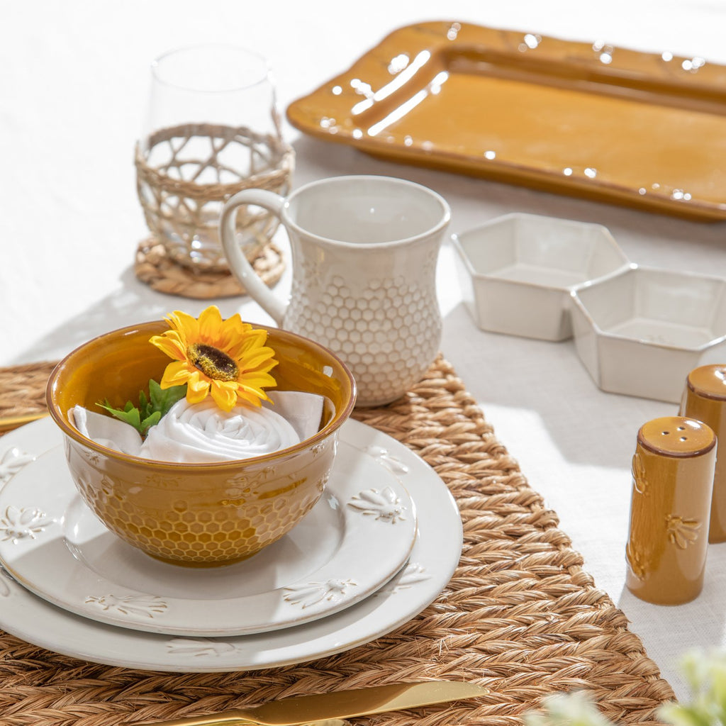 Evergreen Home Accents,13 oz. Ceramic Cup, Honeycomb and Bee Design,5.12x3.54x4.33 Inches
