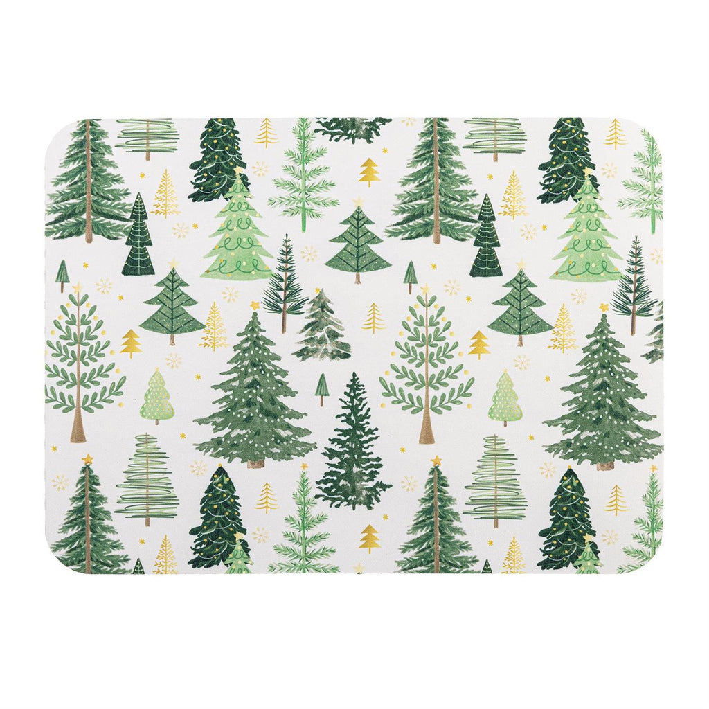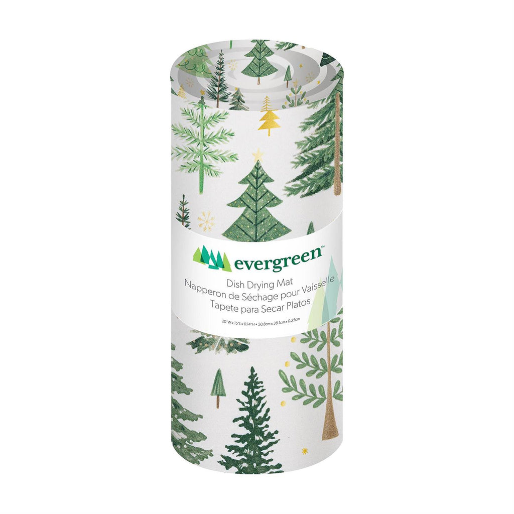 Add a touch of nature to your kitchen with the Shades of Green Kitchen Mat Fabric Drying Mat. Measuring 20" x 15", this mat features a delightful pattern of evergreen trees, perfect for bringing a fresh, forest feel to your home. Made from absorbent fabric, it's designed to keep your countertops dry and your dishes secure as they dry. Ideal for everyday use, especially during the winter season, this drying mat is both functional and decorative. Its thin profile allows for easy storage when not in use.