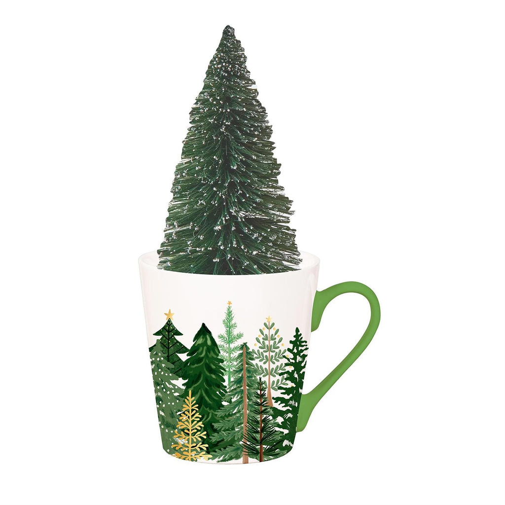Delight in the seasonal charm with the Shades of Green Drinkware Gift Set. This set includes a 12oz ceramic flare cup adorned with a whimsical forest pattern, perfect for enjoying your favorite beverages. Complemented by a bottle brush tree, this set adds a festive touch to any setting. The compact dimensions make it an ideal choice for gift-giving or personal use. Packaged in a tasteful gift box, it's ready to enchant anyone who receives it.