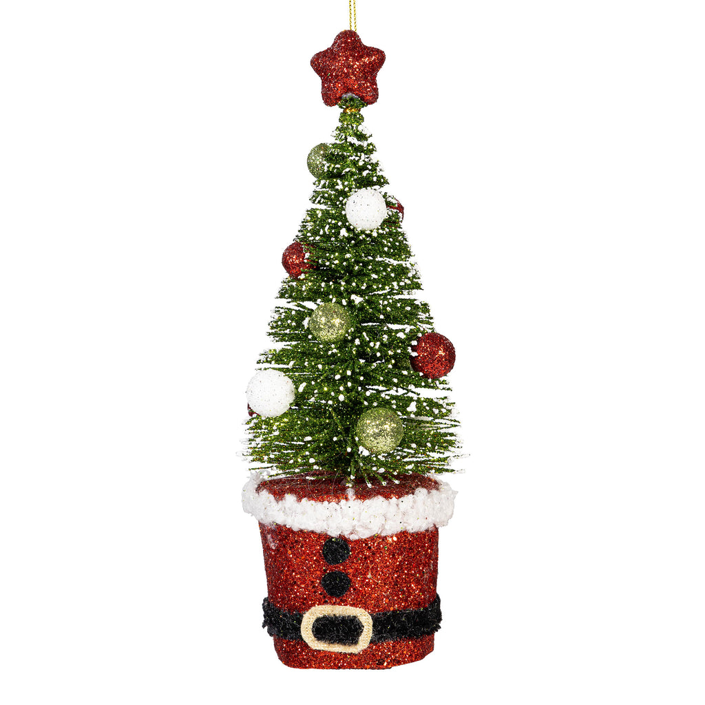 Celebrate the holiday season with this delightful set of three Traditional Santa Bottle Brush Tree Ornaments. Each ornament features a charming Santa-themed base, topped with a festive bottle brush tree adorned with colorful baubles and a star. Crafted from durable plastic, these ornaments are both lightweight and shatterproof, making them perfect for hanging on any branch. At 7 inches tall, they add a playful touch to your Christmas décor. Presented in a gift box, they make a wonderful present for friends and family, or a delightful addition to your own holiday collection.