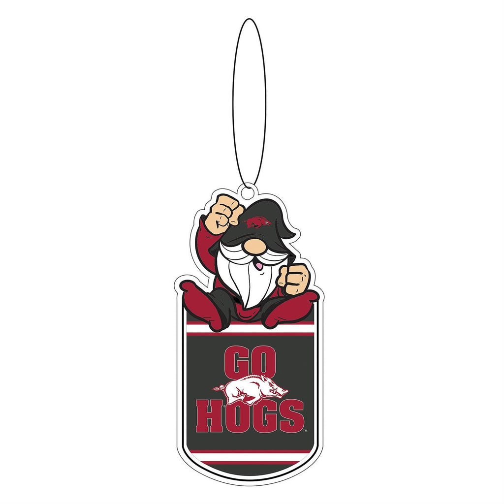 Celebrate your University of Arkansas spirit with this charming Gnome Fan Gift Tag Ornament. Perfect for any Razorbacks enthusiast, this ornament showcases a playful gnome in team colors, cheerfully supporting the team. Measuring 2 inches wide and 4 inches tall, it's an ideal addition to your holiday decorations or year-round display. Made to last, this ornament features vibrant colors and detailed design, making it a delightful gift for any fan or alumni. Show off your school pride with this unique and spirited ornament.