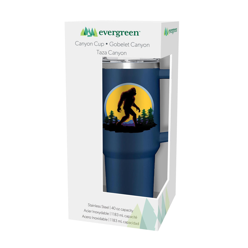 The Bigfoot Canyon Cup is a 40oz double-wall stainless steel travel cup, perfect for keeping your beverages at the desired temperature while on the go. It comes with a convenient straw and is packaged in a gift box, making it an ideal present for any occasion.