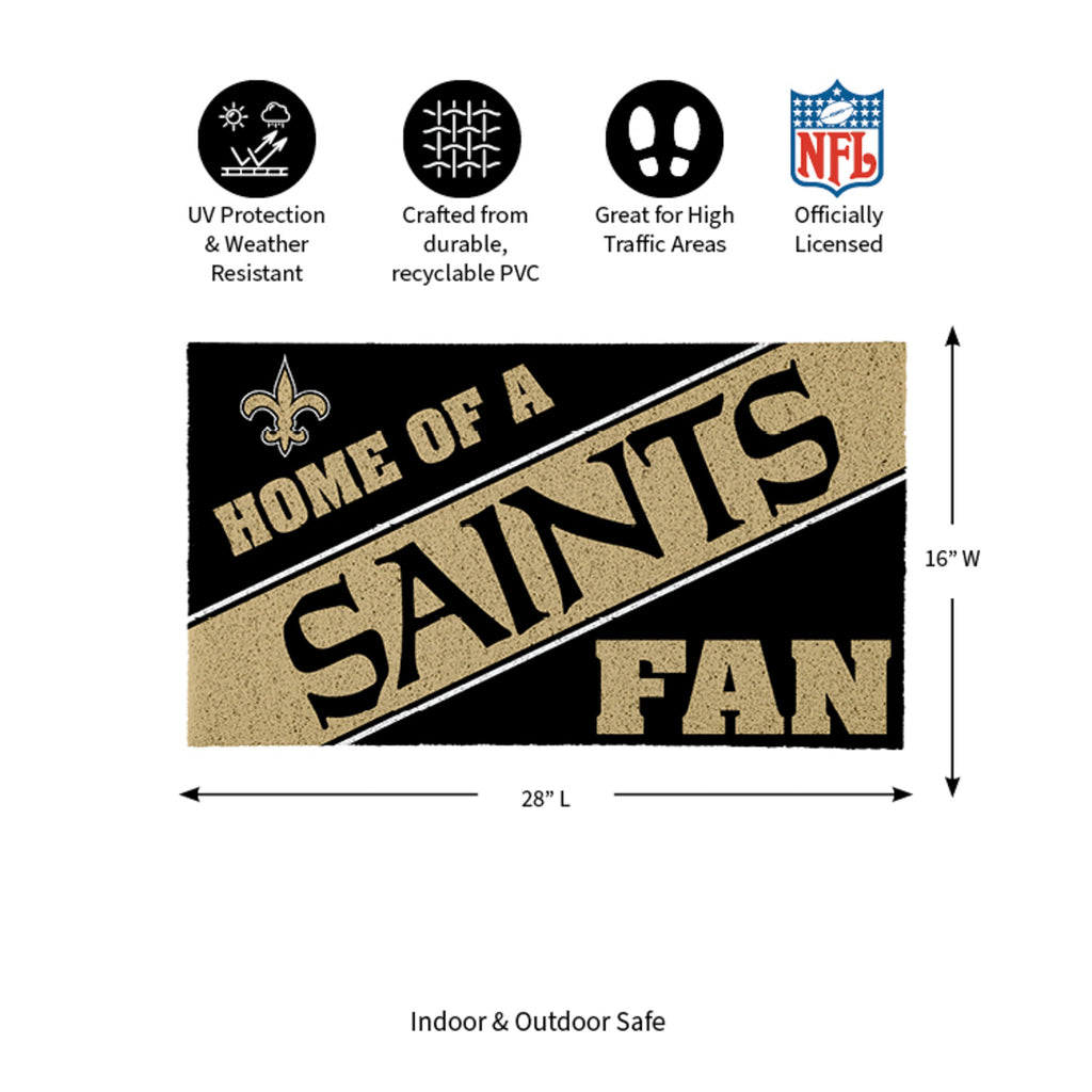 Showcase your New Orleans Saints pride with this durable PVC mat, perfect for any fan's home. Officially licensed, it's designed for both indoor and outdoor use.