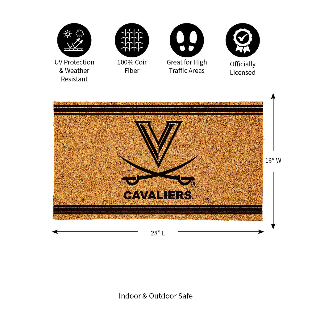 This officially licensed University of Virginia coir mat is perfect for showcasing school spirit while keeping your entryway clean. Made from durable coir fiber, it offers excellent scraping power to remove dirt and debris.