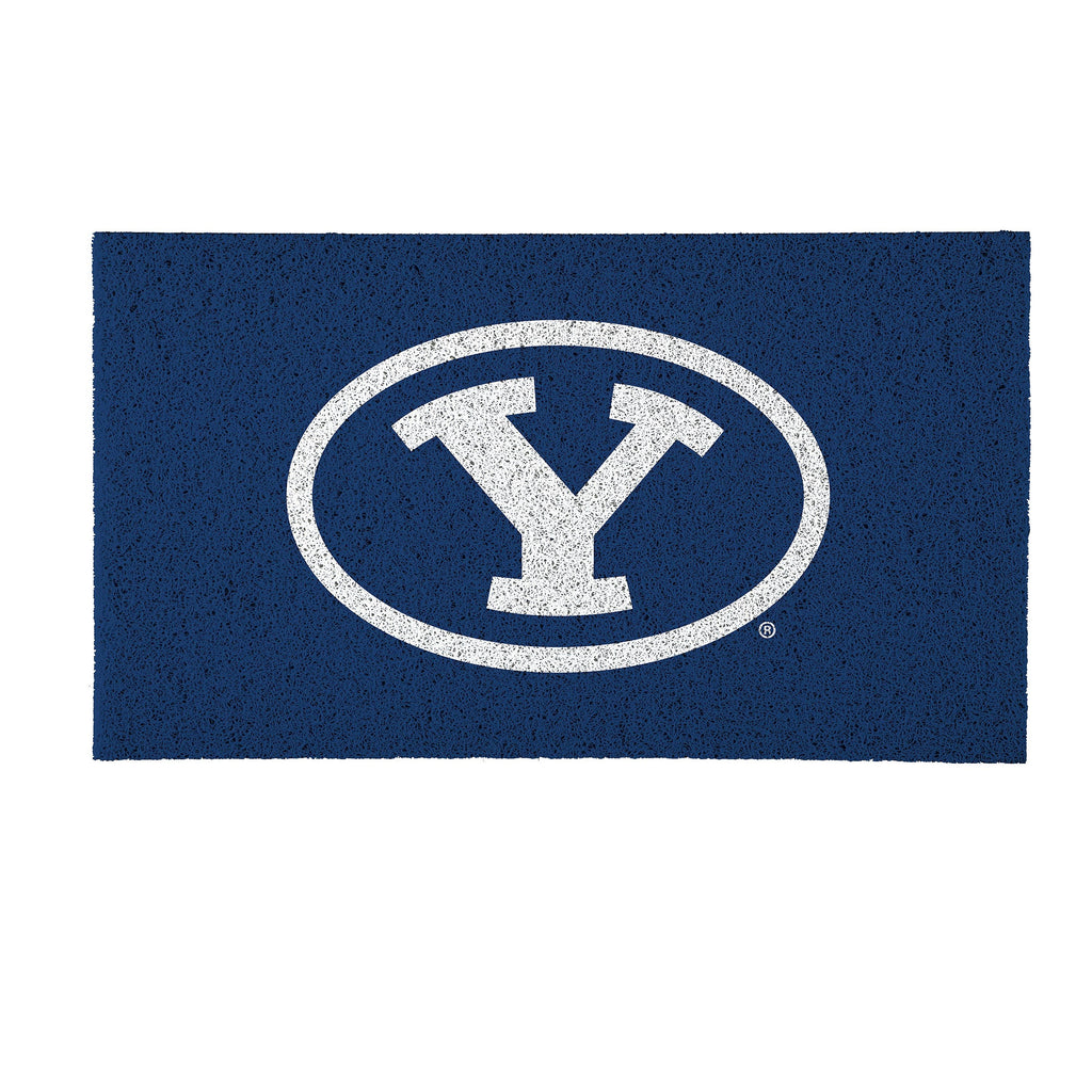 Show your school spirit with this vibrant full color PVC mat featuring the Brigham Young University logo. Perfect for any fan looking to add a touch of university pride to their entryway.