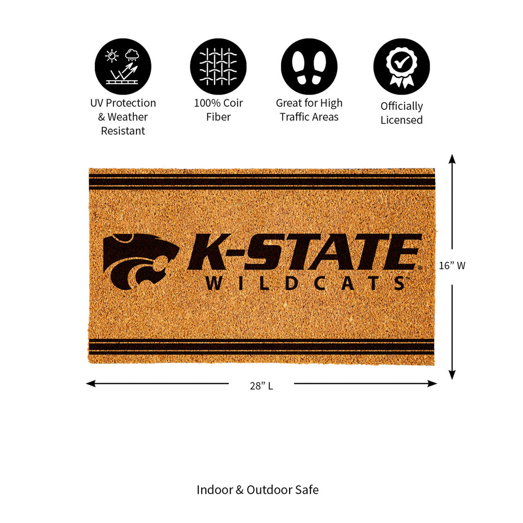 Welcome guests with this durable Kansas State University coir mat, perfect for showcasing school spirit. Made from 100% coir fiber, it is designed to withstand high traffic and outdoor conditions.