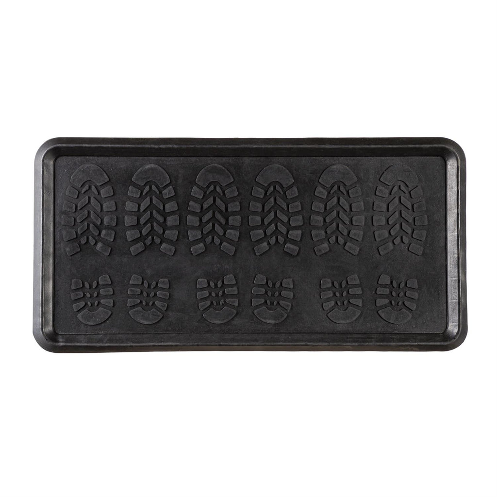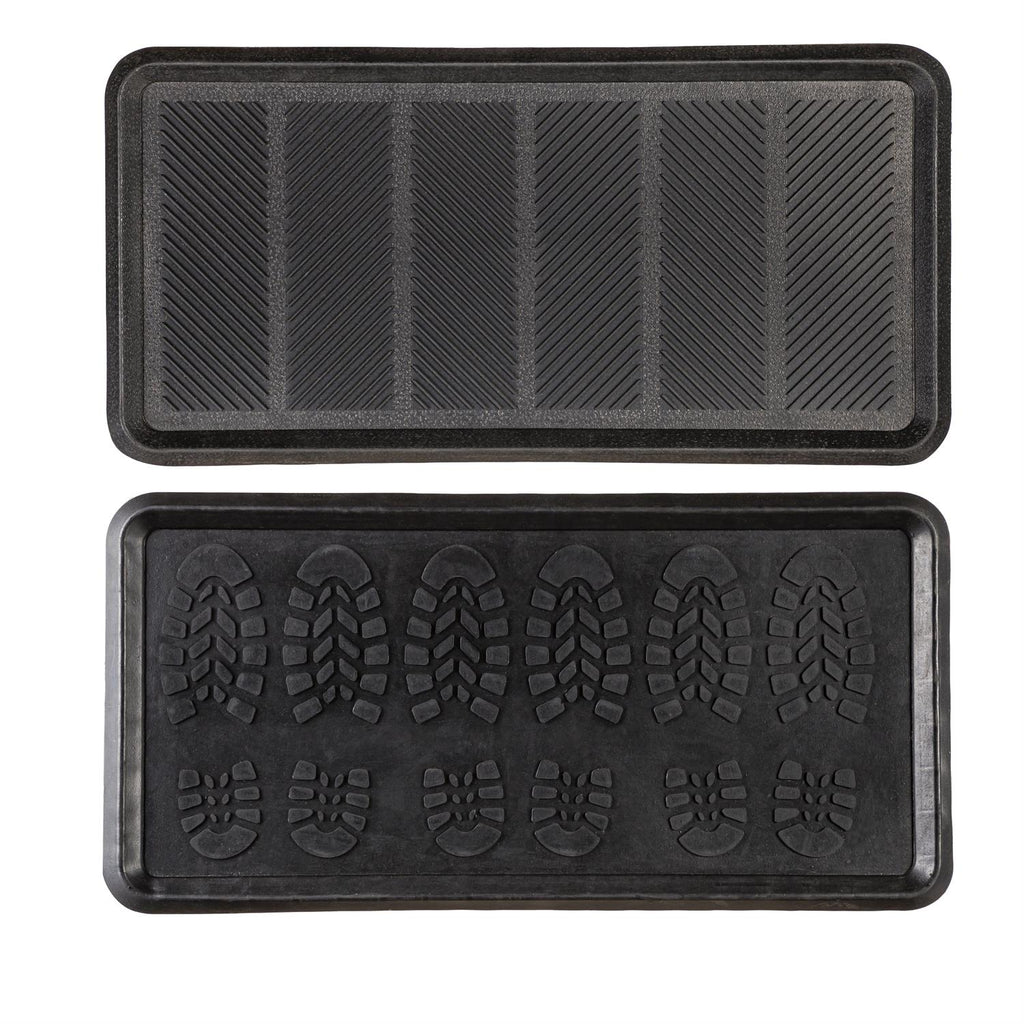 Keep your floors clean and organized with this set of two rubber boot trays, perfect for any entryway. Measuring 31.5 inches in length, 15.8 inches in width, and 1.18 inches in height, these trays are designed to hold multiple pairs of boots or shoes. The durable rubber construction ensures longevity and easy maintenance, while the raised edges help contain dirt and moisture, protecting your floors. Ideal for mudrooms, garages, or entryways, these trays feature unique patterns to catch and trap debris effectively. A practical solution for any home, these boot trays are essential for maintaining a tidy and clean environment.