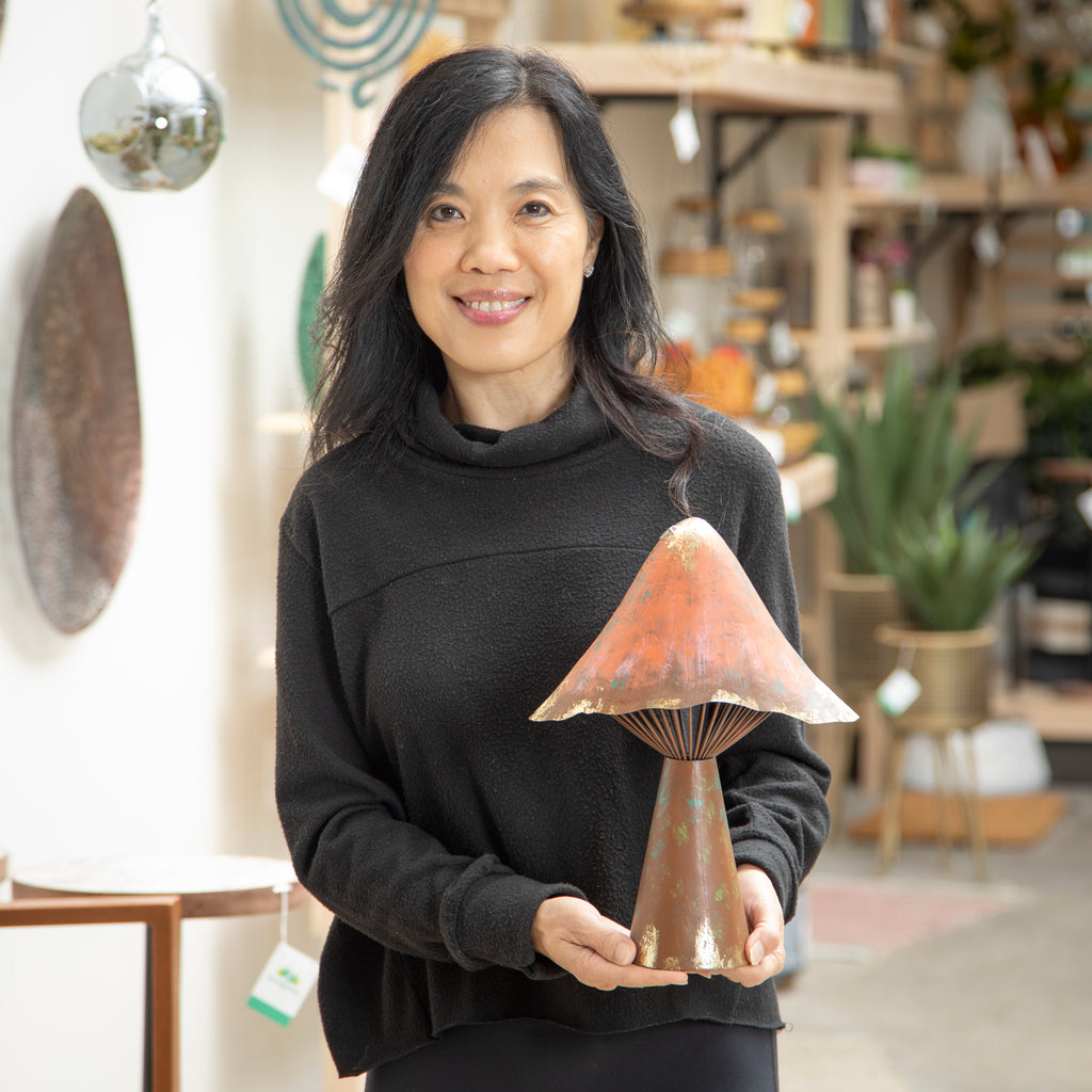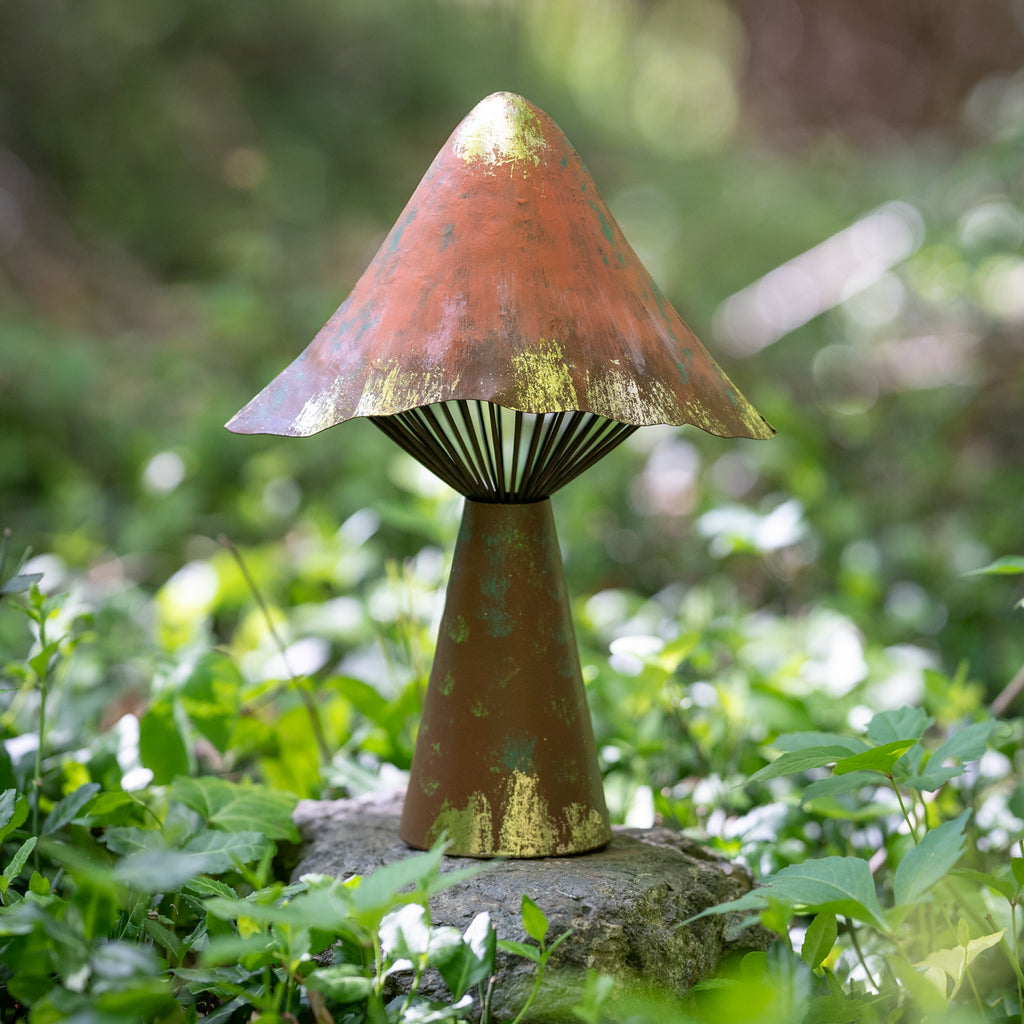 Create a whimsical look this spring season with this Terracotta Metal Mushroom Statuary