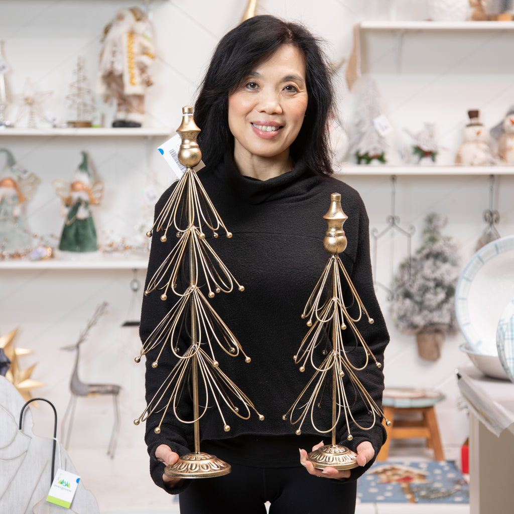 Evergreen Statuary,Golden Metal Trees Statuary, Set of 2,9.06x9.06x24.02 Inches