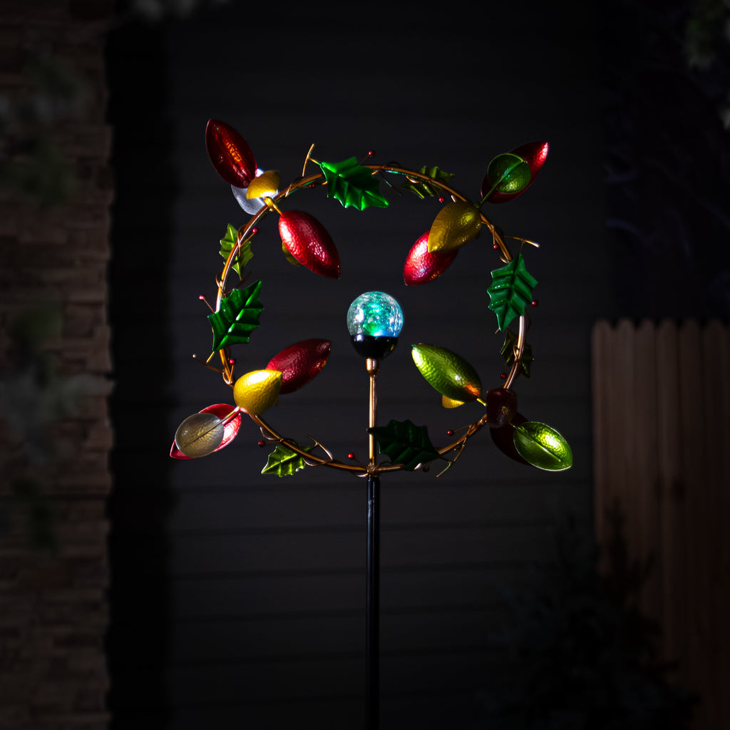 Turn any garden into an enchanting oasis with this wind spinner. Crafted of durable material. Weather- and rust-resistant. Some assembly required. Sturdy stake allows for easy display.