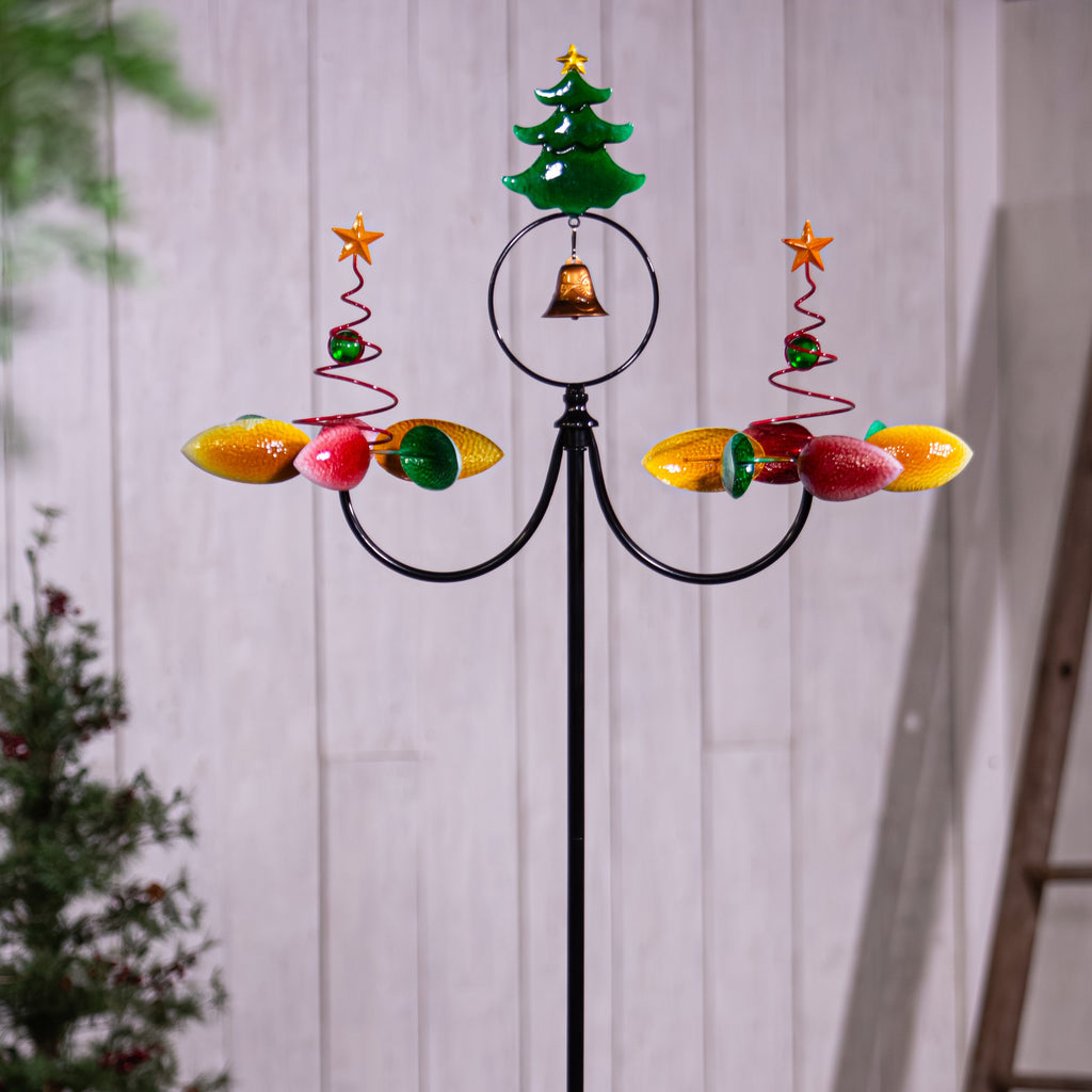 Evergreen Wind,75"H Christmas Tree with Bell Wind Spinner,11.81x28.35x76.77 Inches