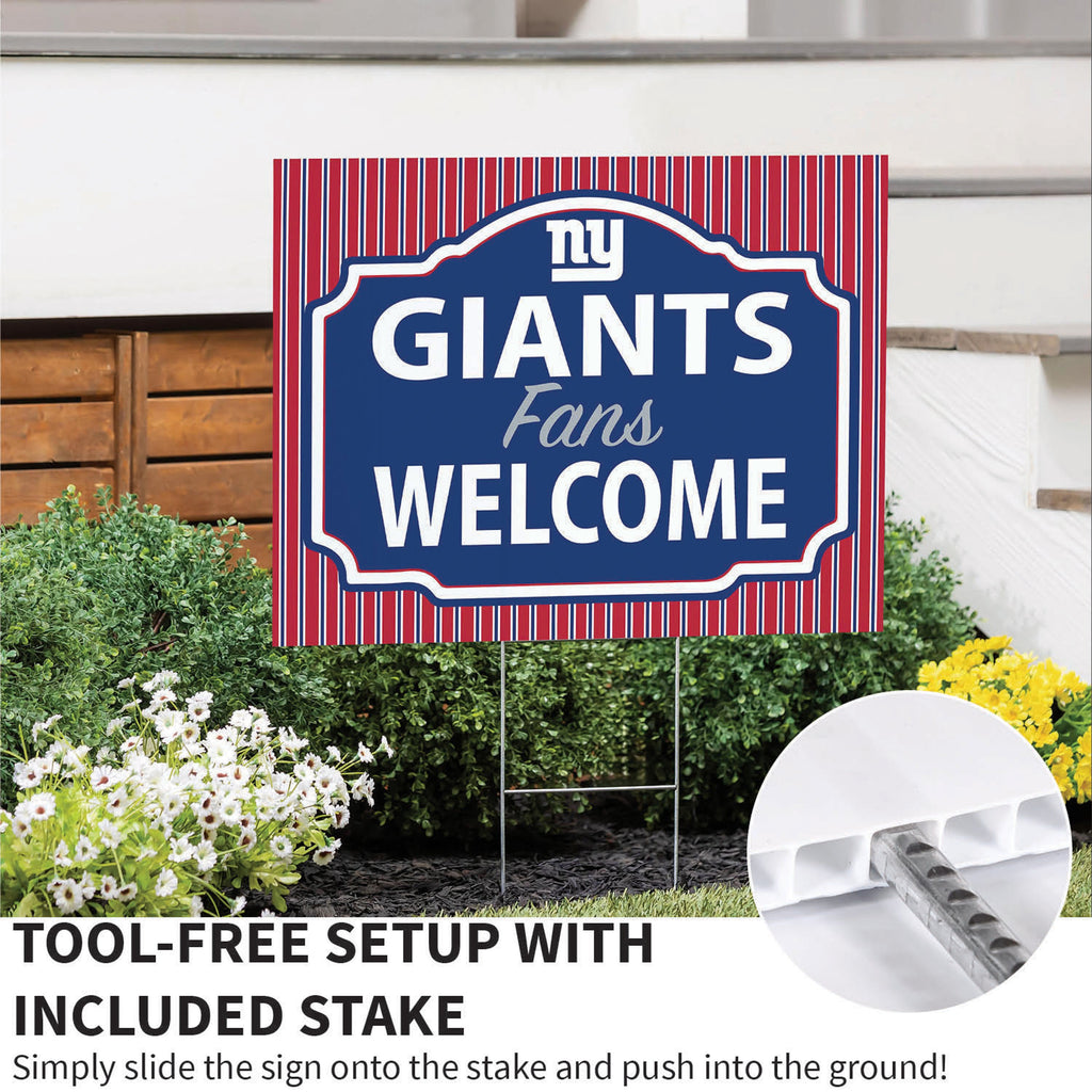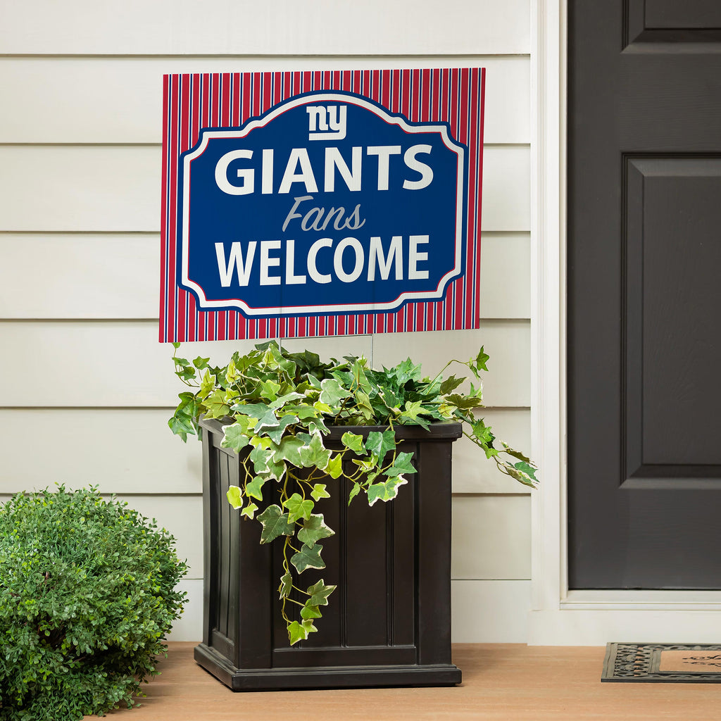 Show your team spirit with the New York Giants 'Fans Welcome' yard sign, perfect for any garden or outdoor space. This vibrant sign is a must-have for any Giants fan looking to enhance their home decor.
