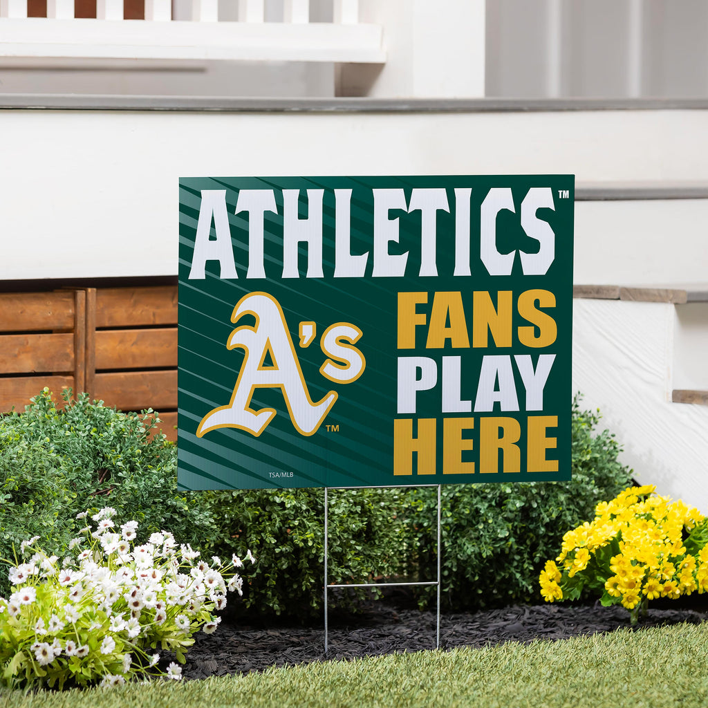Show your team spirit with the Athletics Yard Sign 'Fans Play Here,' perfect for any sports enthusiast's garden or outdoor space.