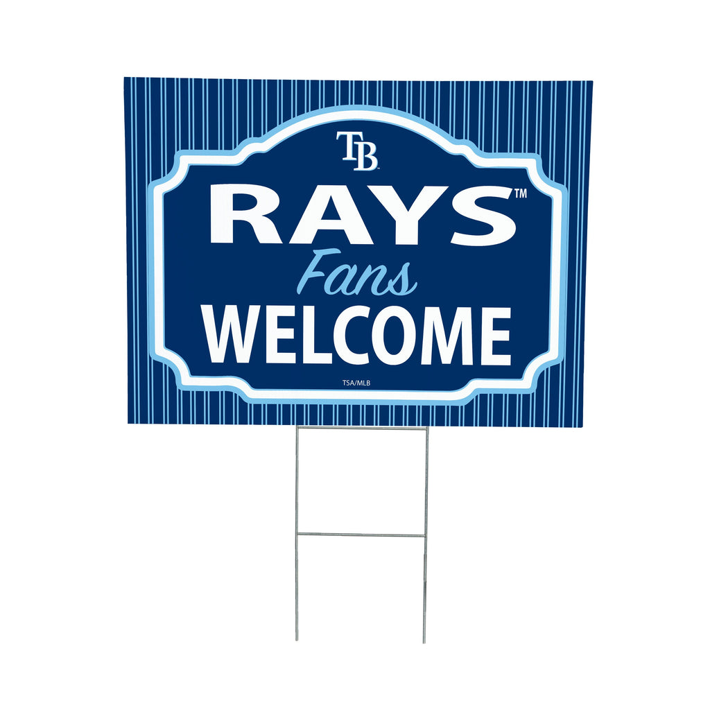 Show your team pride with the Tampa Bay Rays 'Fans Welcome' yard sign, perfect for any garden setting.