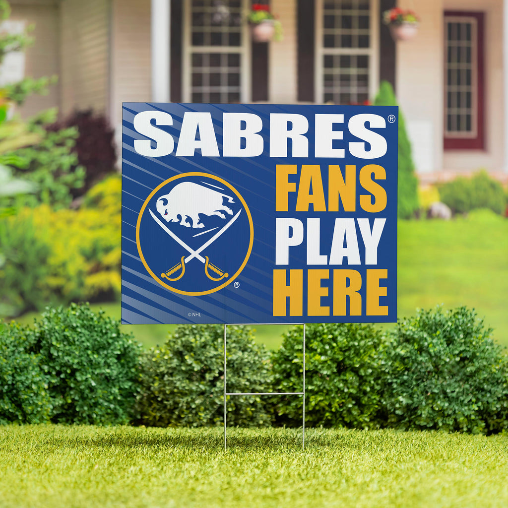 Show your team spirit with the Buffalo Sabres 'Fans Play Here' yard sign, perfect for any Sabres fan's garden or front yard.