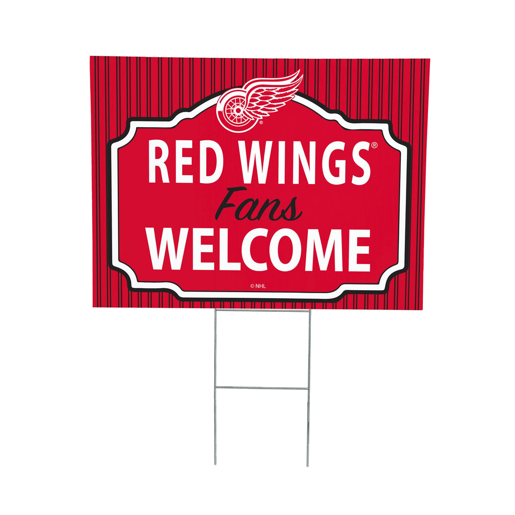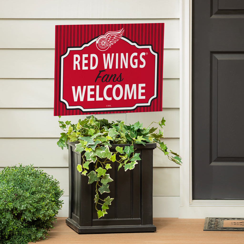 Show your team spirit with the Detroit Red Wings 'Fans Welcome' yard sign, perfect for adding a touch of sports enthusiasm to your garden or yard.