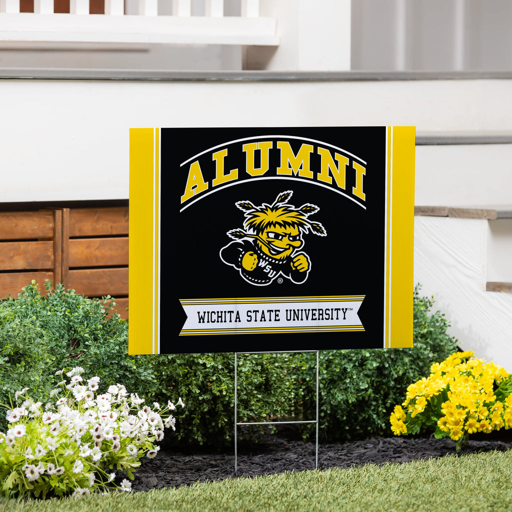 Show your Wichita State University pride with this vibrant coroplast yard sign, perfect for alumni who want to celebrate their alma mater. This durable sign is designed for outdoor use, making it a great addition to any garden or front yard.