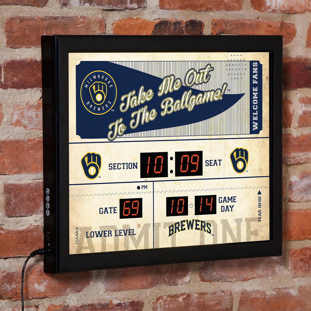 Show off your Milwaukee Brewers pride with this stylish scoreboard wall clock, perfect for any fan's home or office. The clock features a digital display and authentic team graphics.