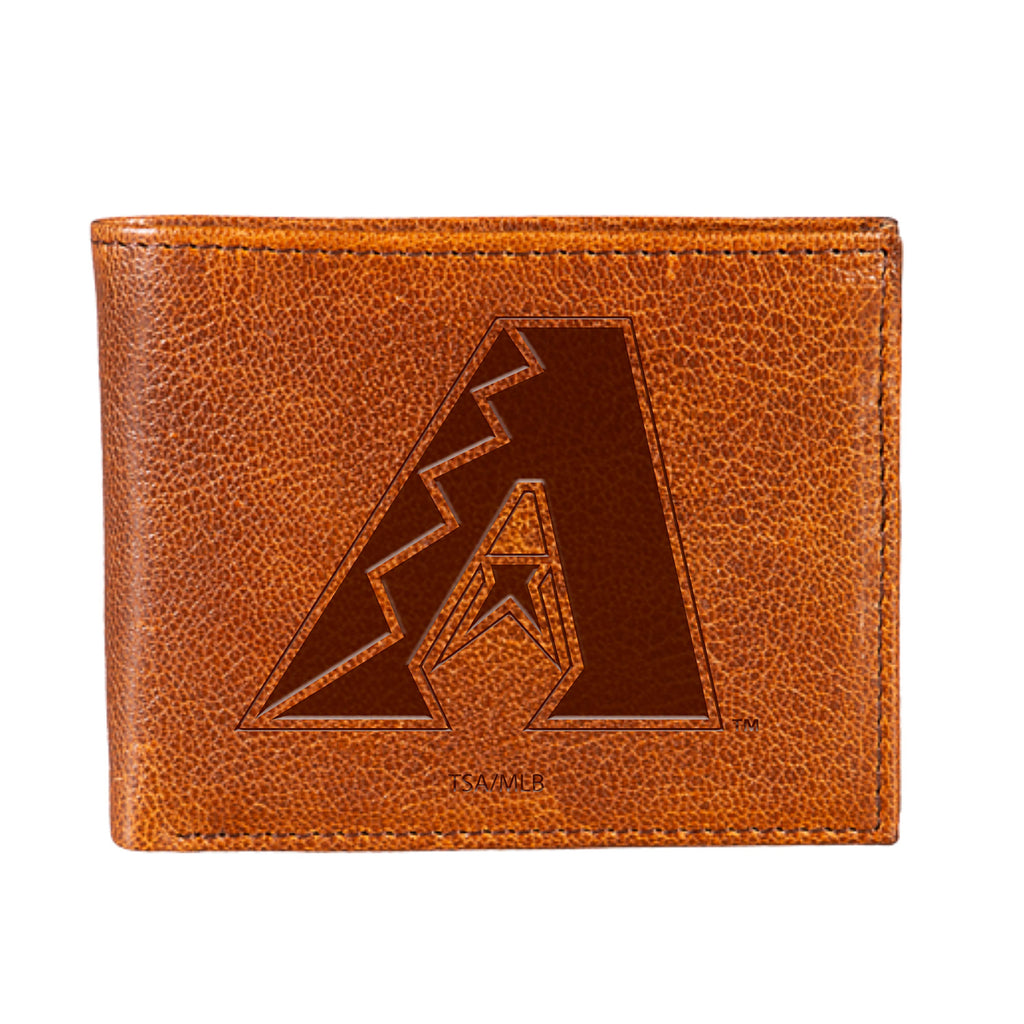 Arizona Diamondbacks, Embossed 100% Genuine Tumbled Leather Passcase Bi-Fold Wallet, Brown