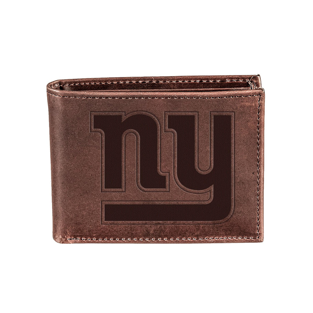 This New York Giants bi-fold wallet showcases your team pride with a sleek and durable design. Crafted from 100% genuine leather, it offers a stylish way to carry essentials.