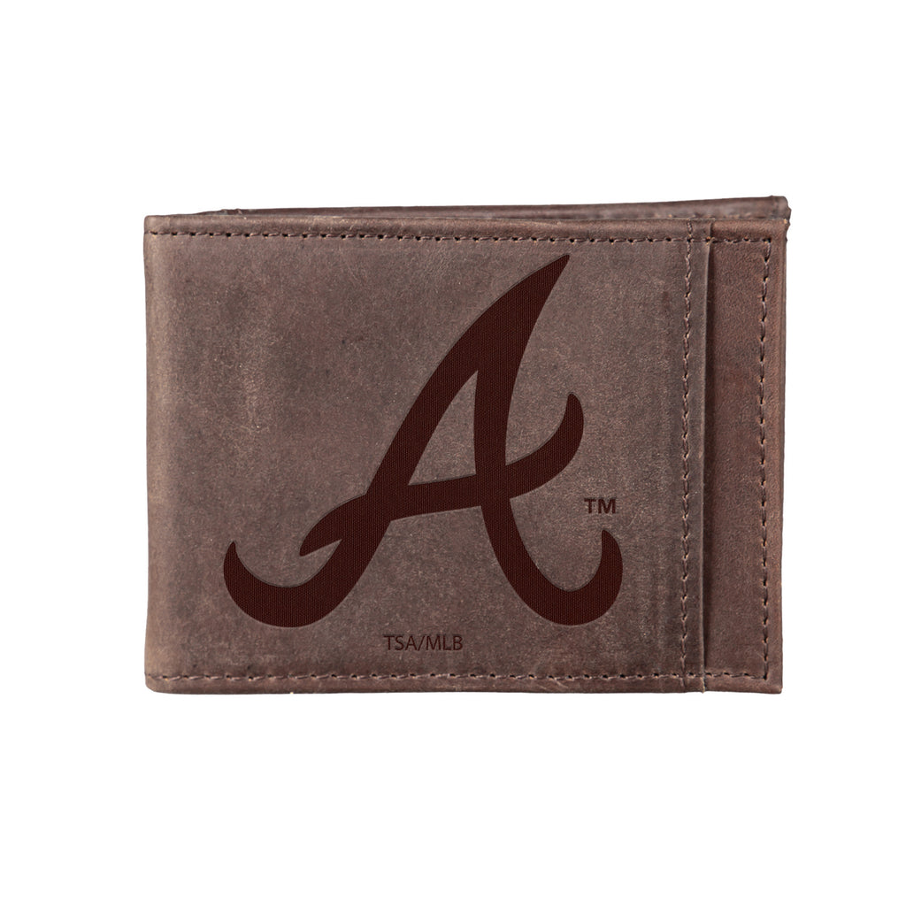 Showcase your team pride with the Atlanta Braves Front Pocket Wallet, featuring RFID blocking technology for secure card storage.