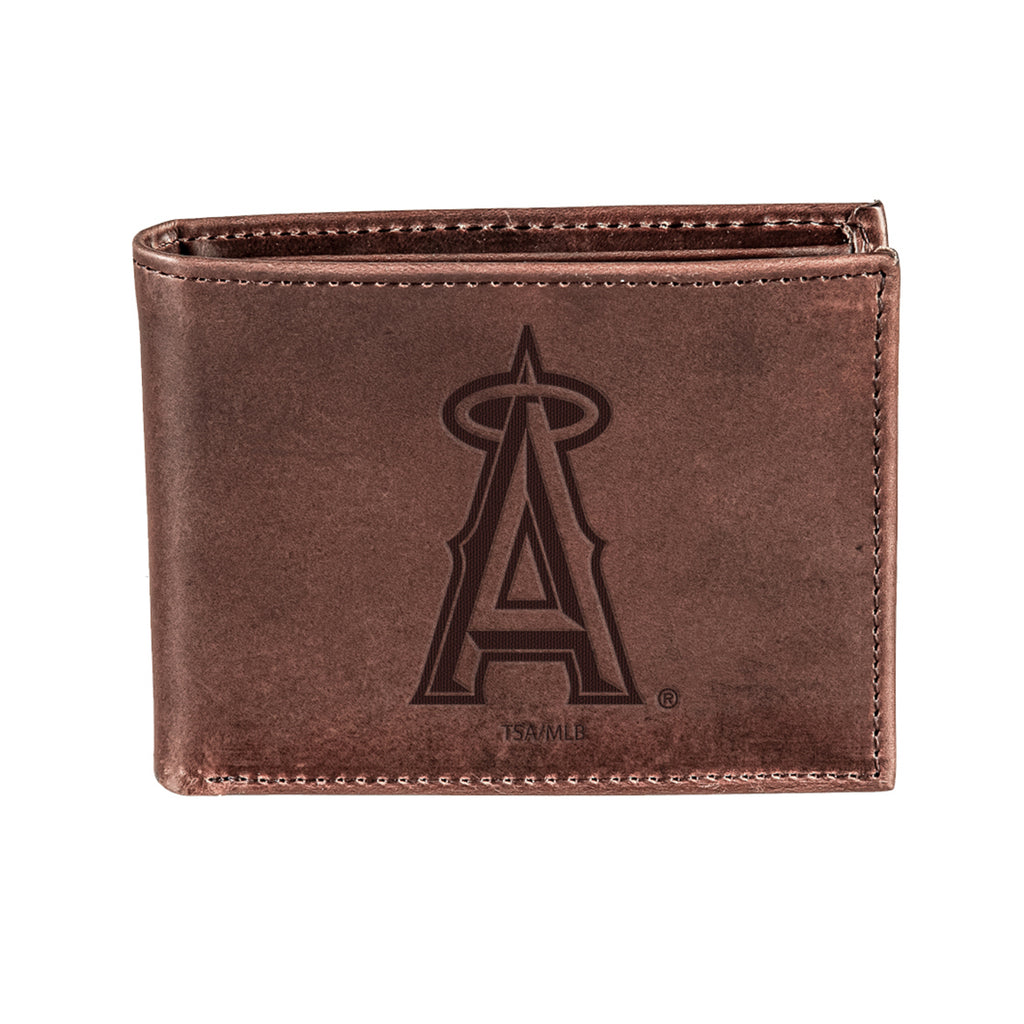 This Los Angeles Angels bi-fold wallet is crafted from 100% genuine leather, offering a durable and stylish way to show team pride. The embossed team logo adds a sophisticated touch to this practical accessory.