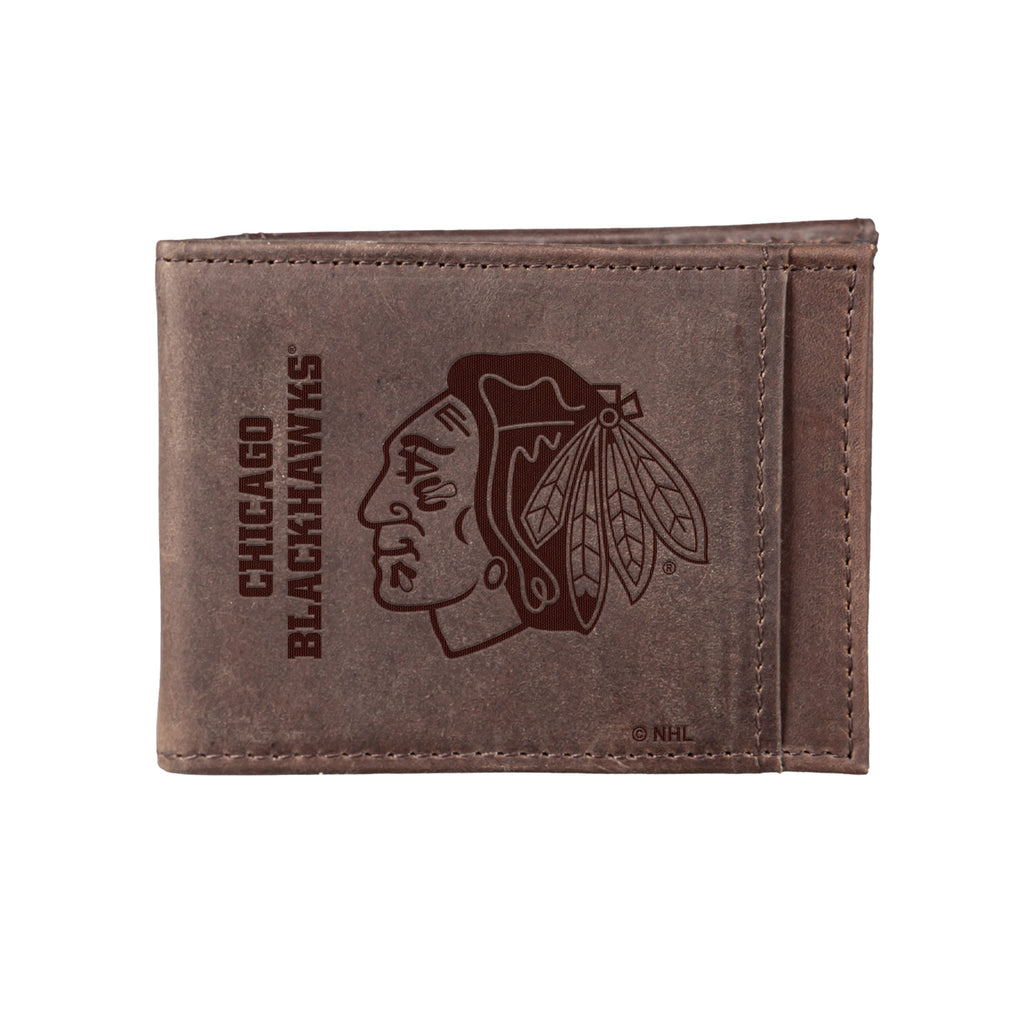 Front Pocket Wallet w/ RFID Blocking, Chicago Blackhawks, Brown