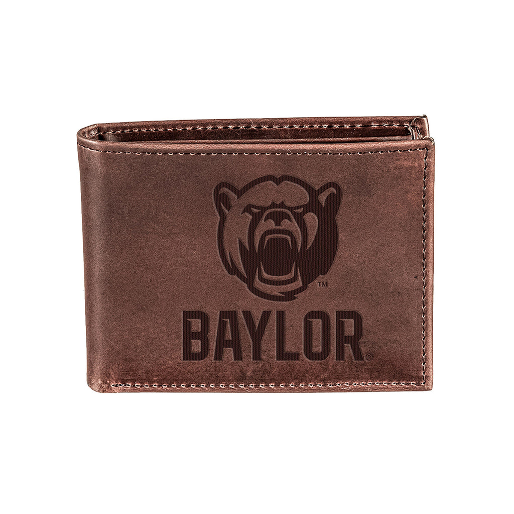 This Baylor University bi-fold wallet is crafted from 100% genuine leather, offering a sophisticated and durable design. Its compact size makes it ideal for daily use, while showcasing your school spirit.