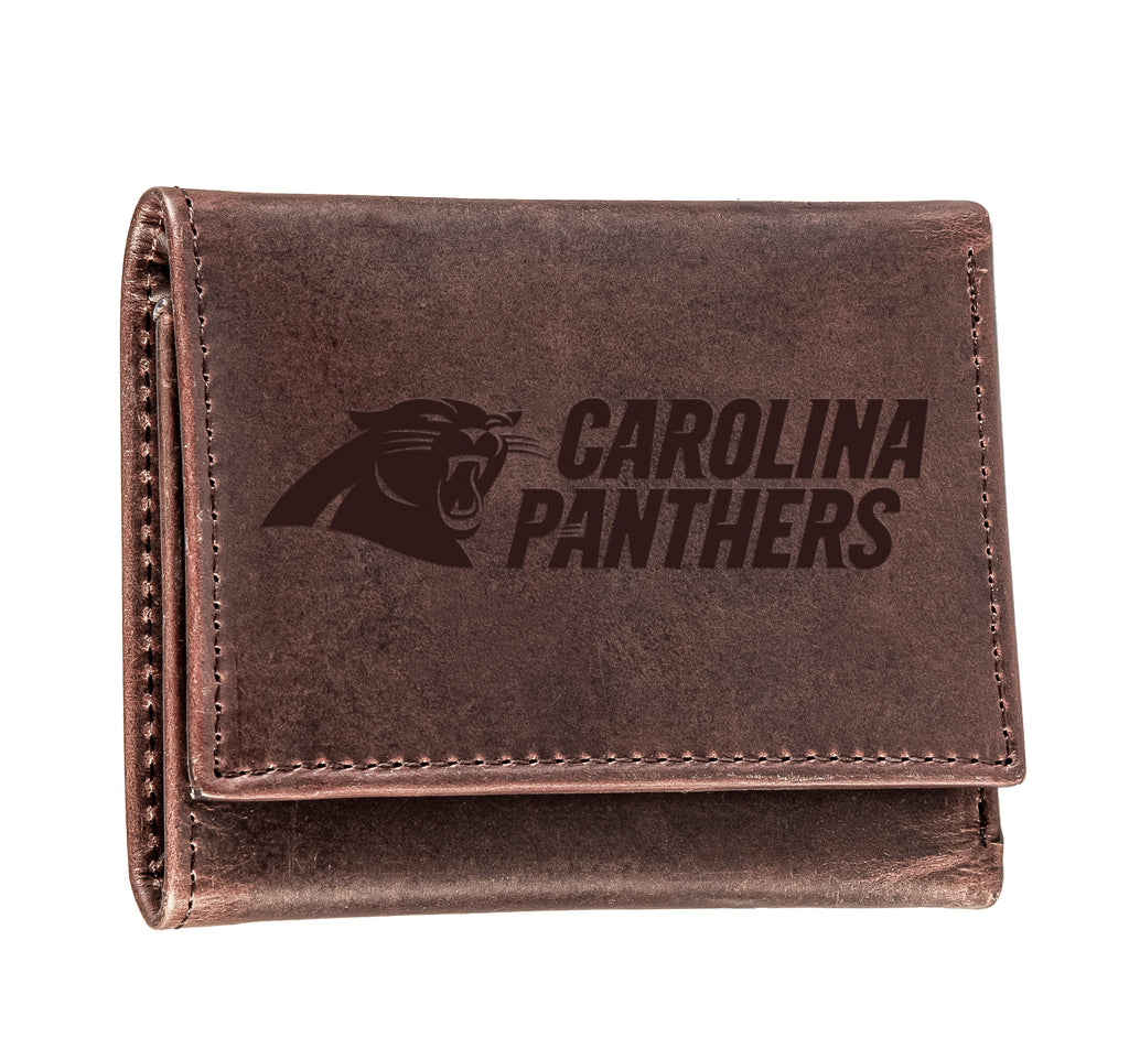 Carolina Panthers, Tri-Fold Wallet, Brown, CH, 100% Genuine Leather
