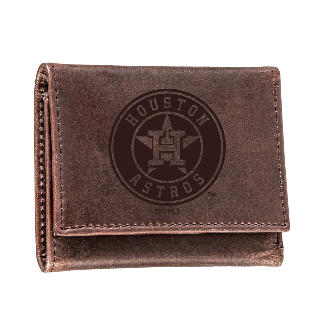 This Houston Astros tri-fold wallet is a stylish and practical accessory for any fan. Made from 100% genuine leather, it offers durability and a premium feel.