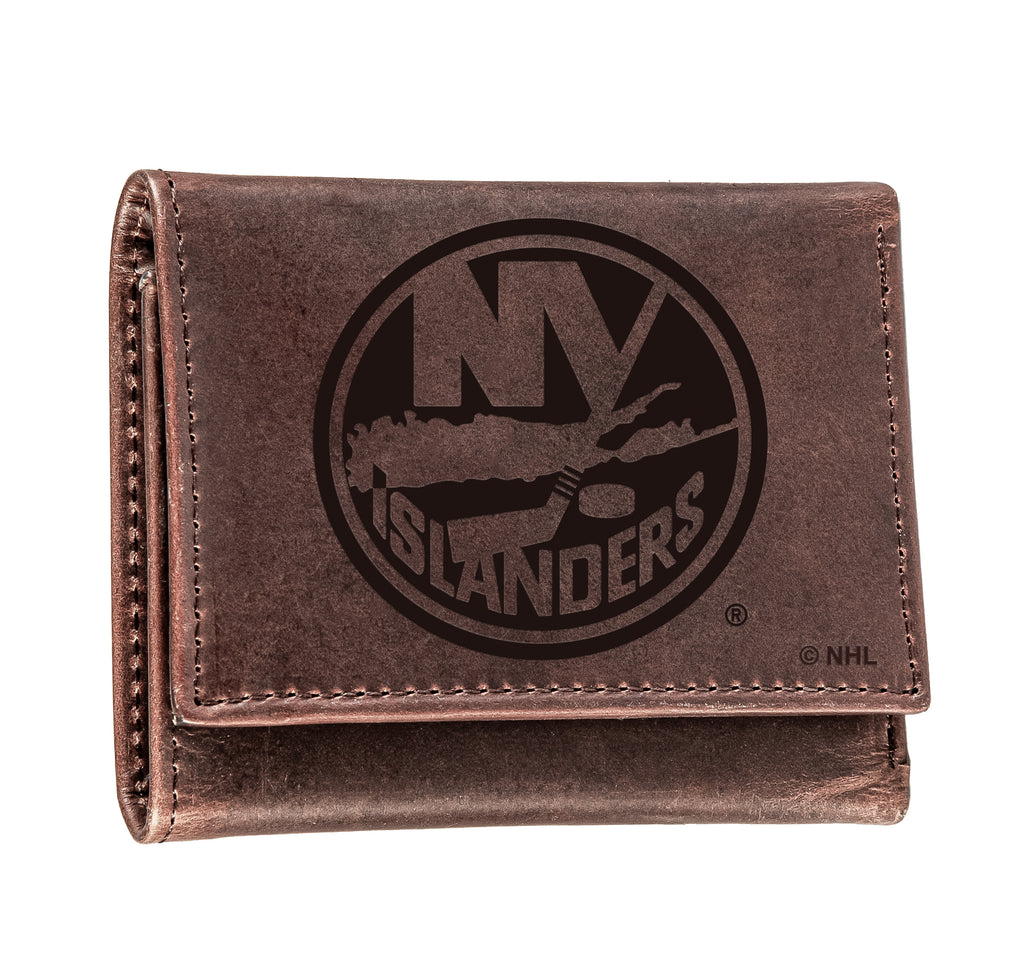 This New York Islanders tri-fold wallet is crafted from 100% genuine leather, offering a stylish and practical way to support your favorite NHL team.