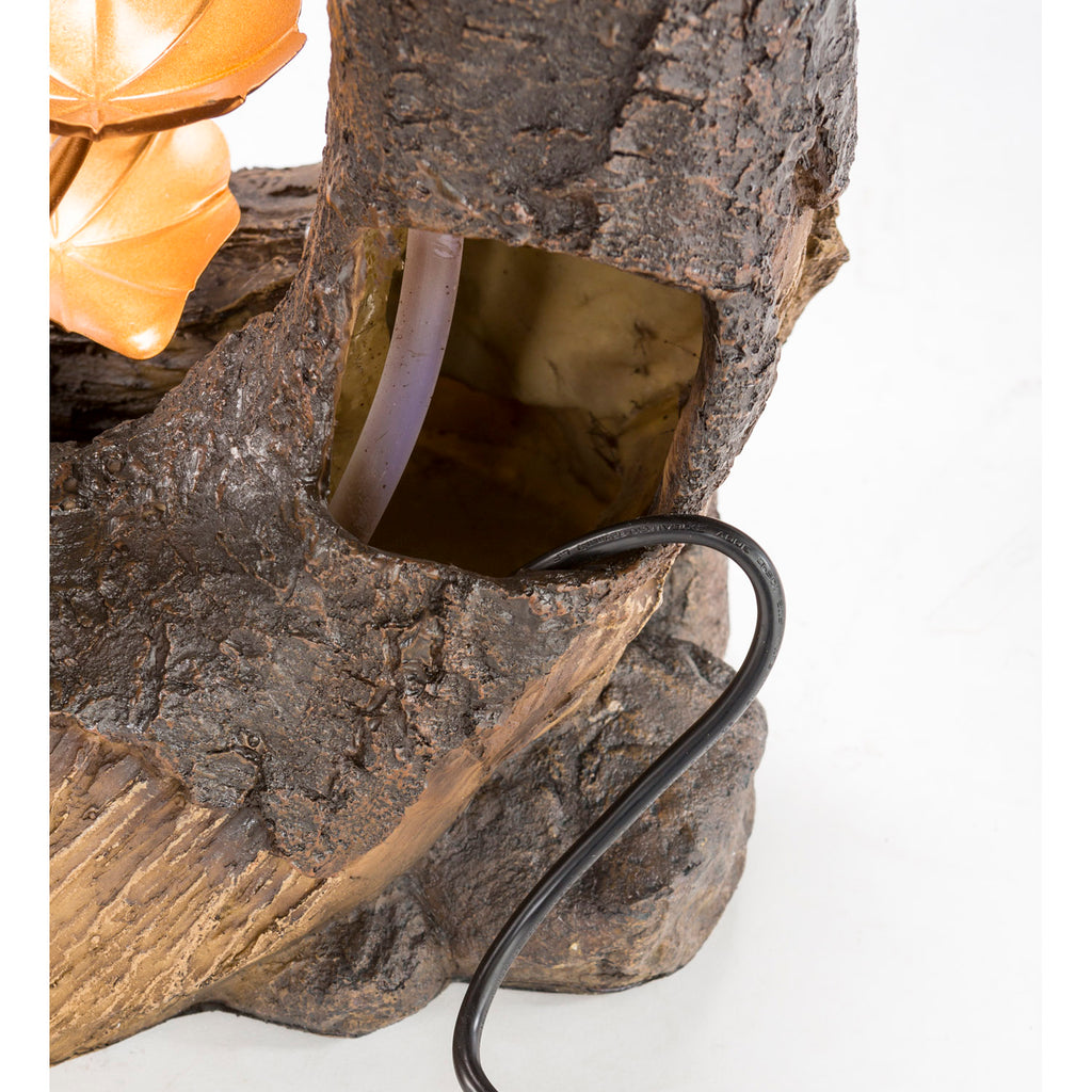 Enjoy the calming sound of water with this stump and lily pad fountain design.