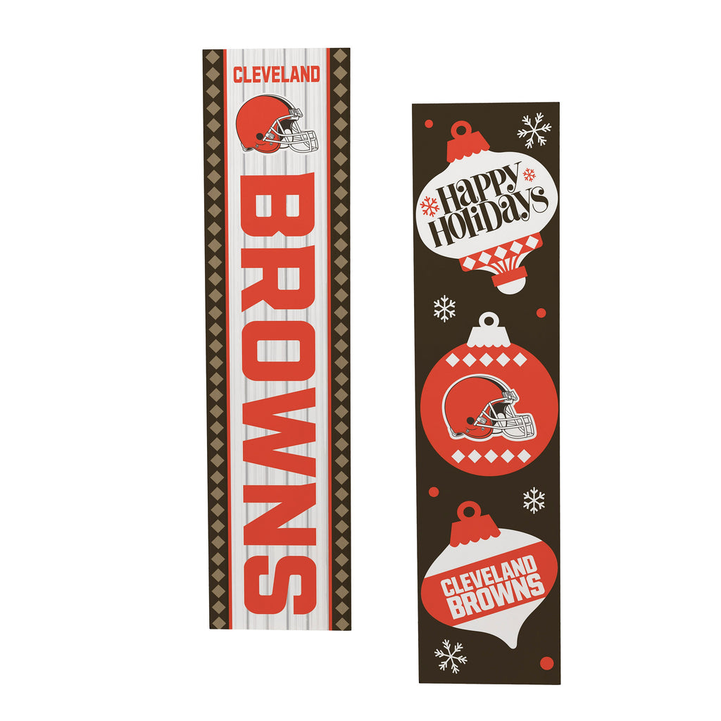 Celebrate the festive season with this Cleveland Browns double-sided porch leaner, perfect for showcasing team spirit. Its vibrant design features holiday motifs and the official team logo.
