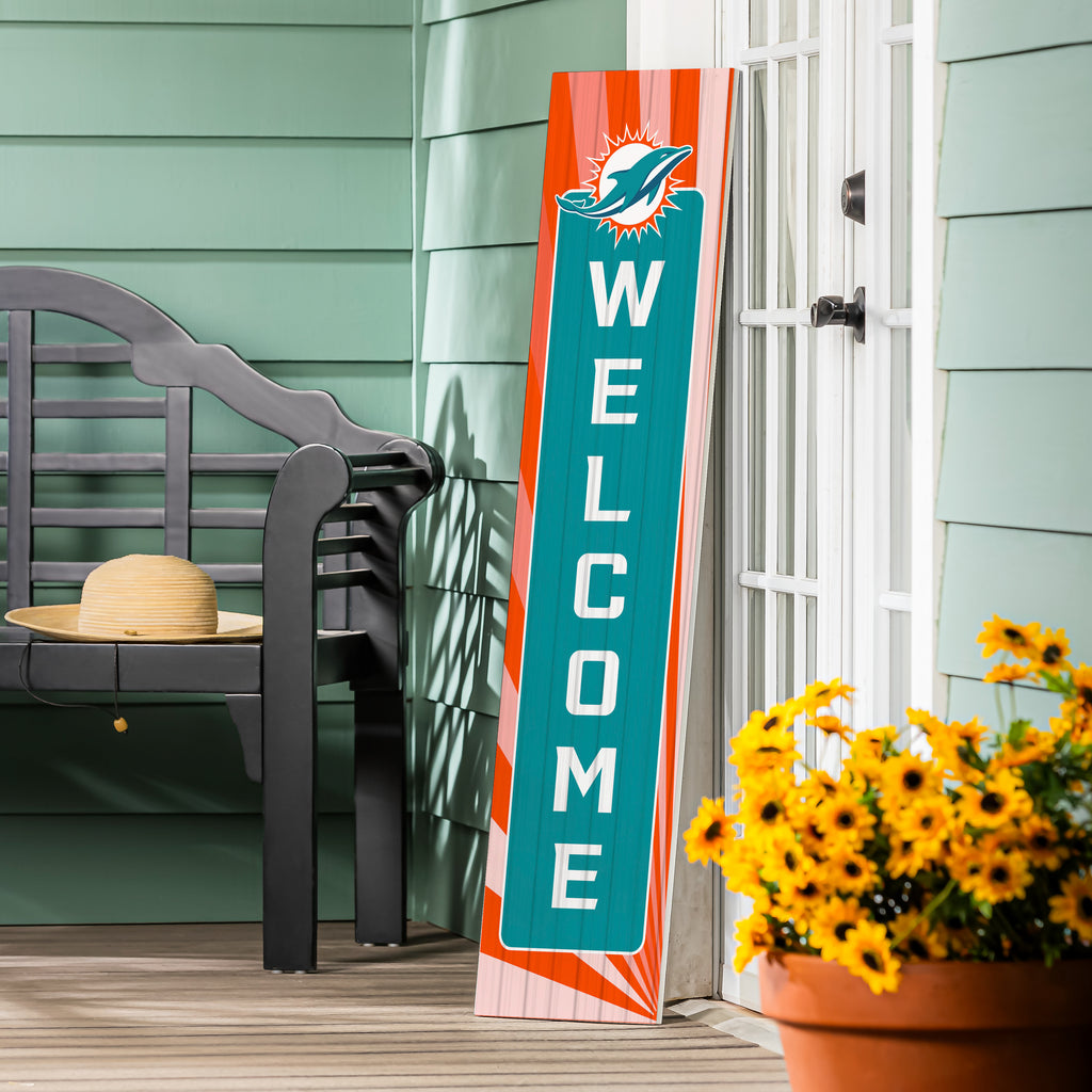 Show your team spirit with the Miami Dolphins Summer Seasonal Large Leaner, perfect for enhancing your porch decor. This vibrant sign features the Dolphins' logo and colors, offering a warm welcome to guests.