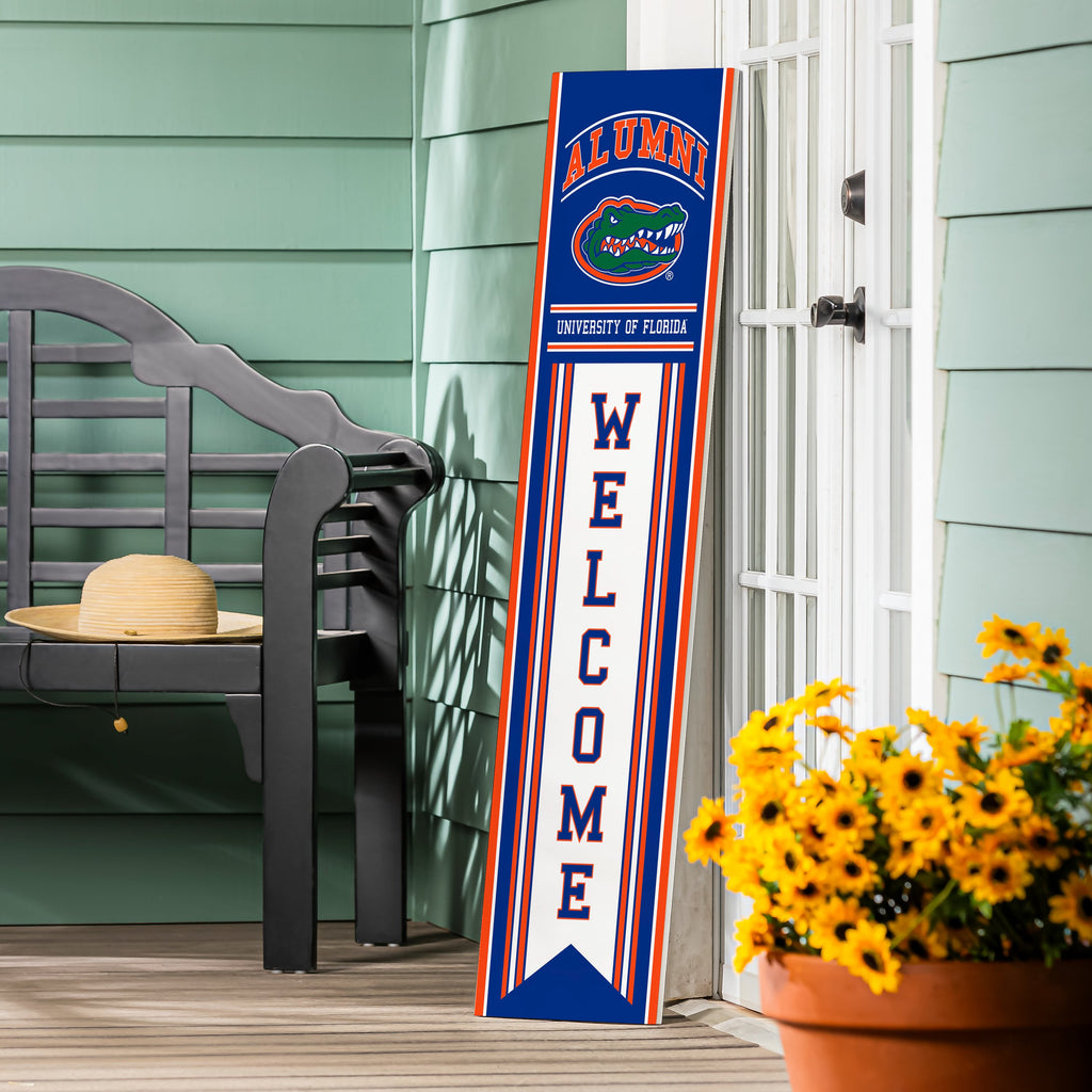Show your school pride with this University of Florida Alumni porch leaner, featuring a bold 'Welcome' message and sturdy design.