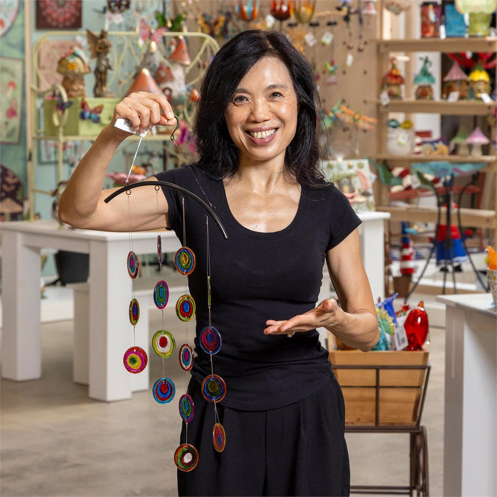 - Vibrant glass circles for eye-catching appeal