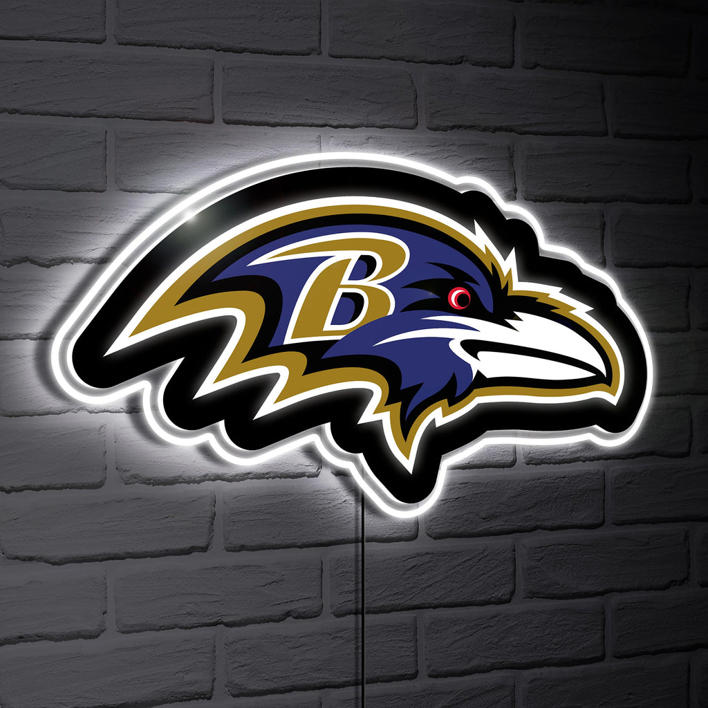 Illuminate your space with this Baltimore Ravens LED wall decor, featuring a striking Glazelite logo. Perfect for avid NFL fans, this piece combines team spirit with stylish home decor.
