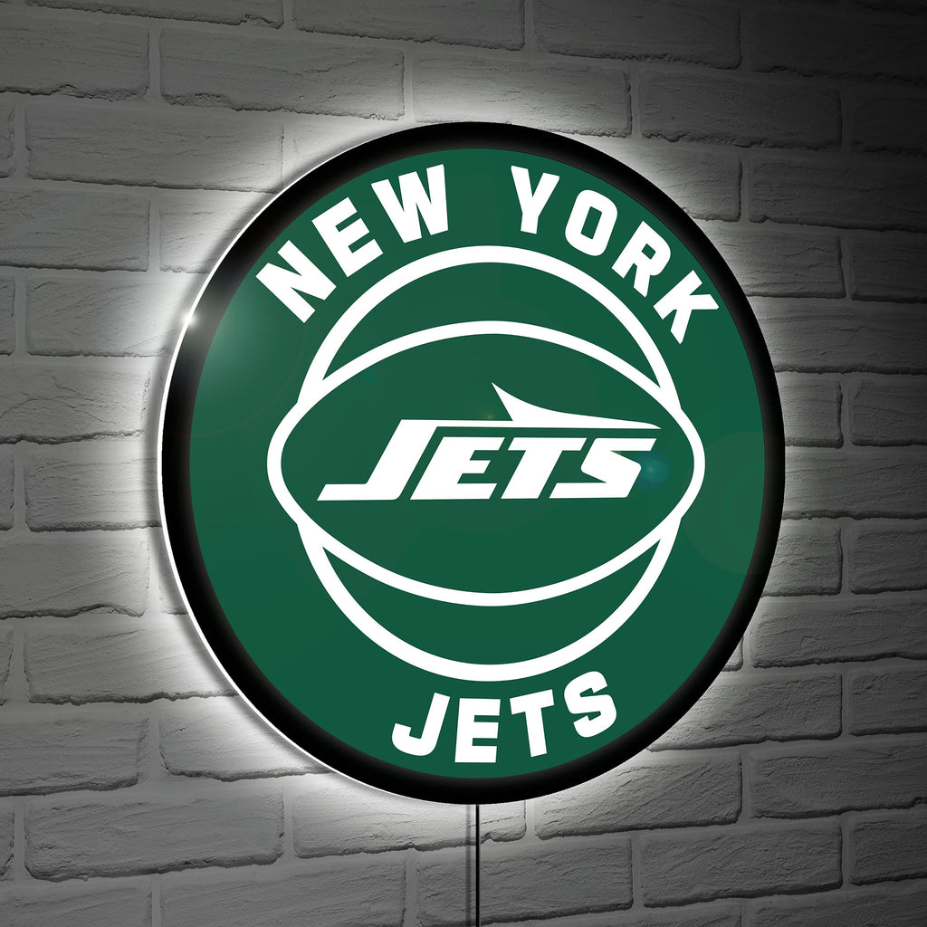 - Vibrant LED lights enhance the New York Jets logo, creating a dynamic focal point.