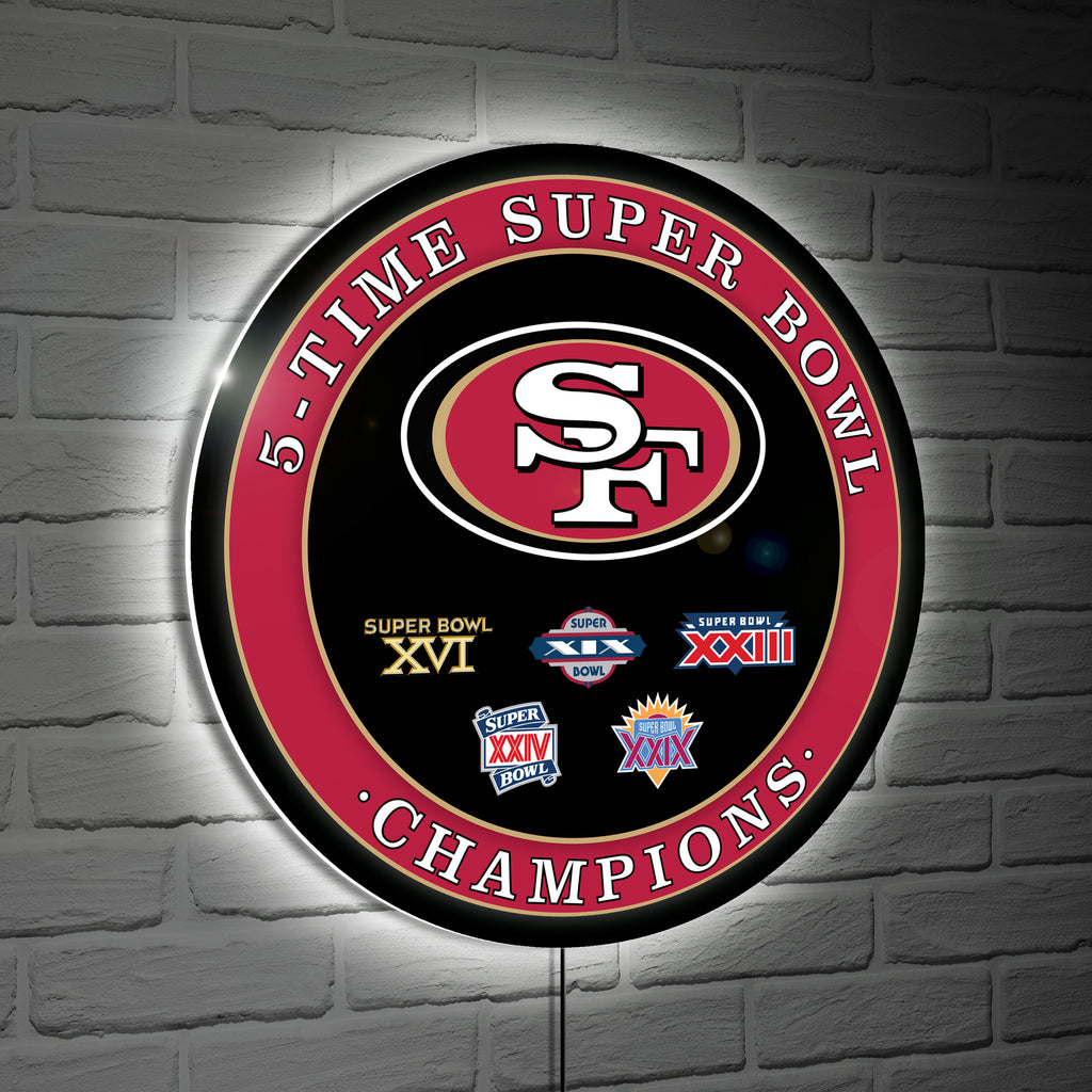 Celebrate the San Francisco 49ers' Super Bowl victories with this stunning LED wall decor. Perfect for any fan, it features the team's logo and championship years illuminated in vibrant colors.