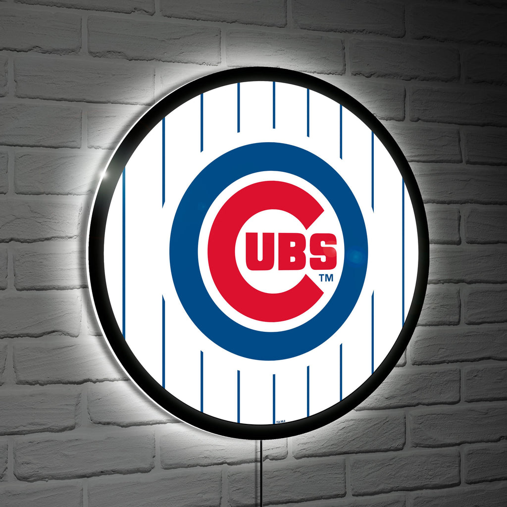 Illuminate your room with the Chicago Cubs Baseball Pinstripe Round LED Wall Decor, featuring the iconic team logo on a pinstripe design. Perfect for any Cubs fan, this LED wall art is an eye-catching addition to your home.