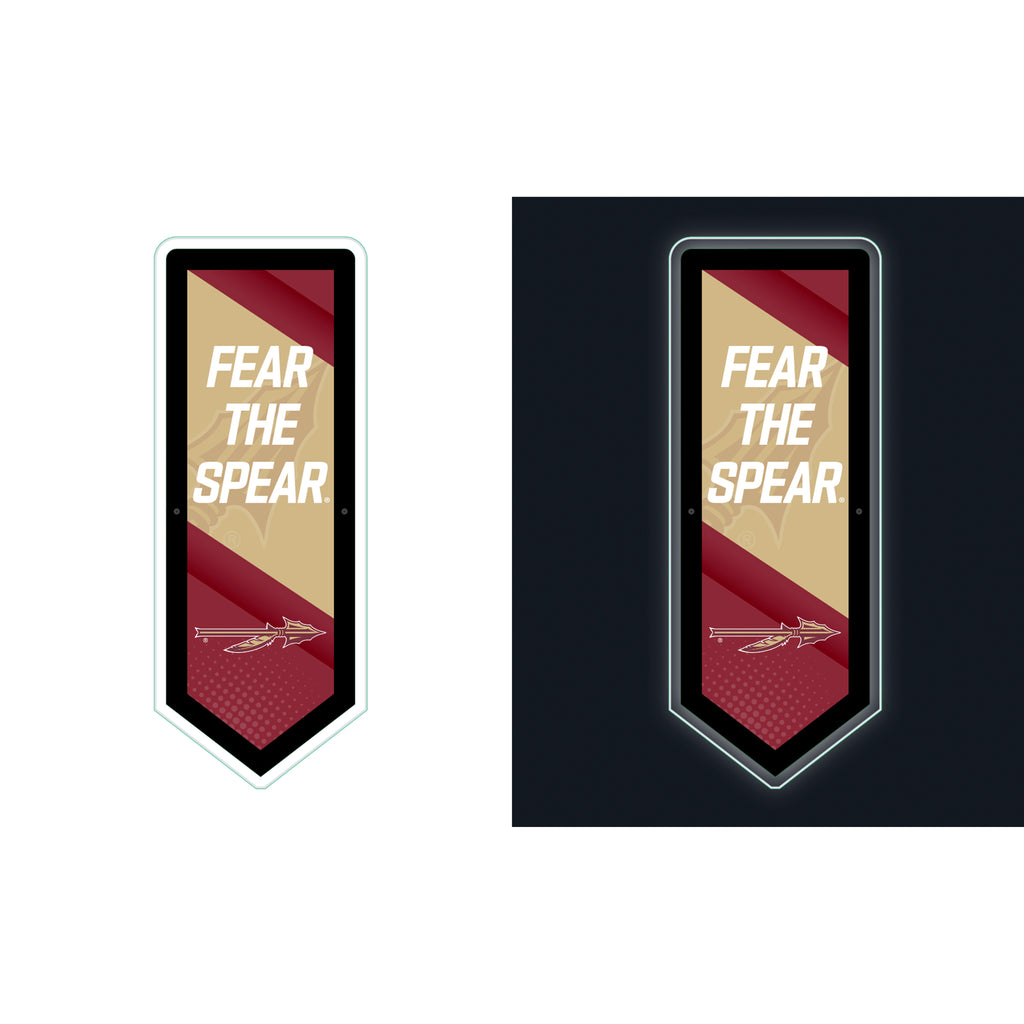 Illuminate your space with the Florida State University College Pennant Glazelite LED Decor, showcasing vibrant school colors and the iconic 'Fear the Spear' message.