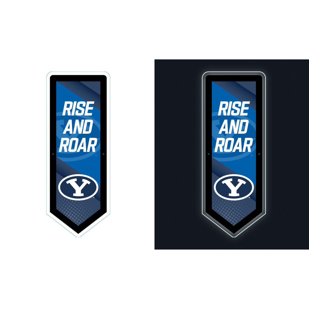 Illuminate your space with the Brigham Young University College Pennant Glazelite LED Decor, featuring the inspiring 'Rise and Roar' design. Perfect for fans, this piece adds a bright touch to any room.